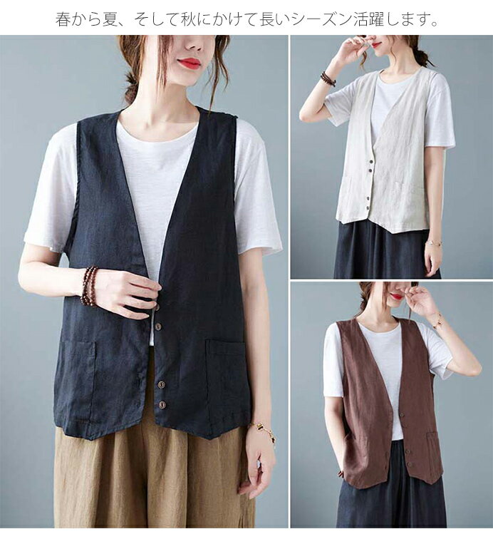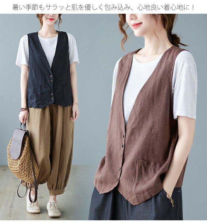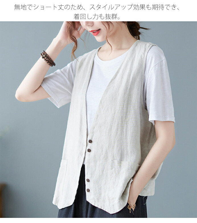 ベスト レディース ノースリーブ アウター レイヤード 前開き 無地 トップス ショート丈 トップス ゆったり 大人 着回し おしゃれ 20代 30代 40代 春 秋 夏 大きいサイズ
