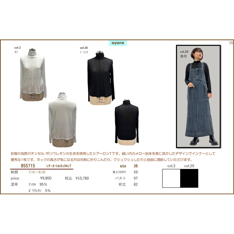 【予約】【ayane 2025 AUTUMN 】ayane(アヤン)シアータートルネックロンT 855715 タートル ロンT シアー サイズ38 レディース タートルネックロンT 長袖ロンT タートルネック ロンT Tee オータム ブランド アヤン 30/40/50/60代 ATM