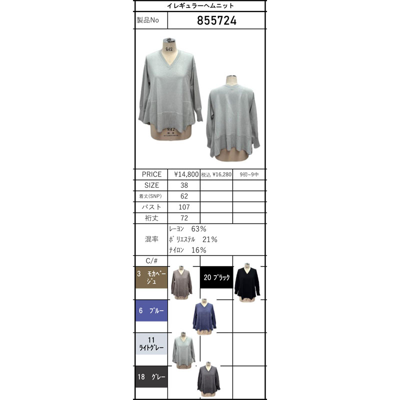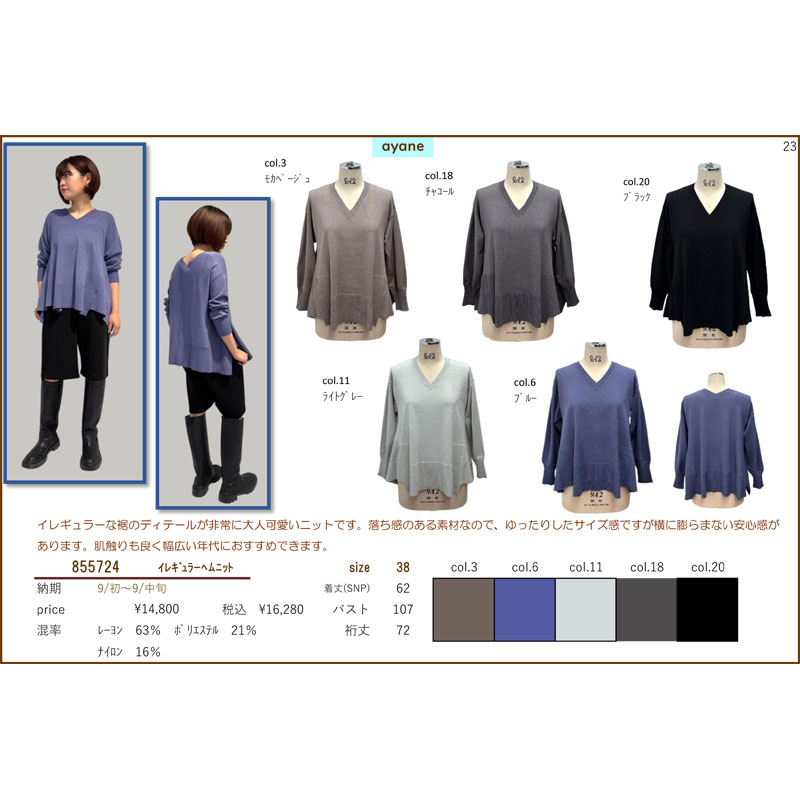 【予約】【ayane 2025 AUTUMN 】ayane(アヤン)イレギュラーへムニット[ニット 長袖 Vネック デザイントップス サイズ38 レディース]855724 Vネックニット ニット ニットプルオーバー トップス ATM