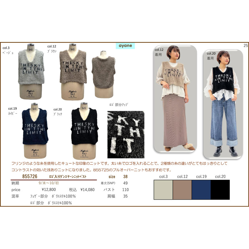 【予約】【ayane 2025 AUTUMN 】ayane(アヤン)ロゴ入りダンスヤーンニットベスト 855726 ニット Vネック ロゴ ニットベスト サイズ38 レディース ニットベスト ロゴベスト ベスト Vネック 重ね着 レイヤード オータム ブランド 30/40/50/60代 ATM