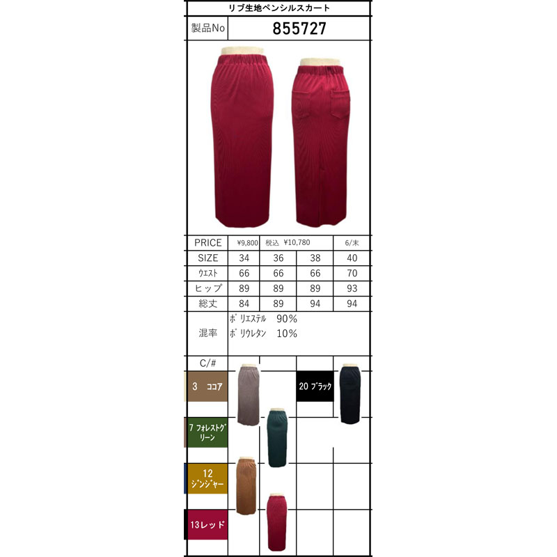 【予約】【ayane 2025 AUTUMN 】ayane(アヤン)リブ生地ペンシルスカート[ タイト サイズ34/36/38/40 レディース]855727 ペンシルスカート タイトスカート ロングスカート タイト スカート ペンシルスカートATM