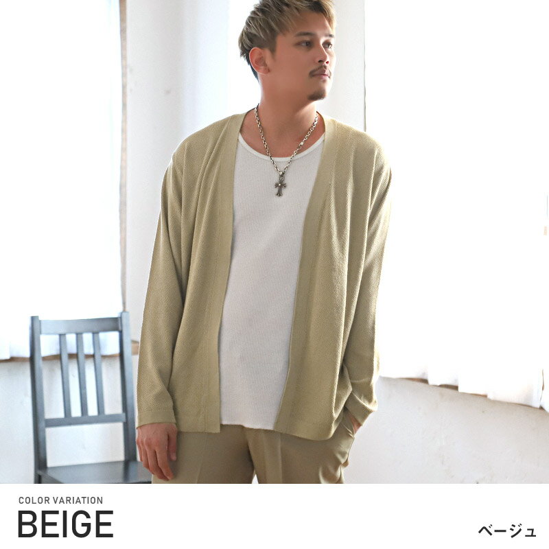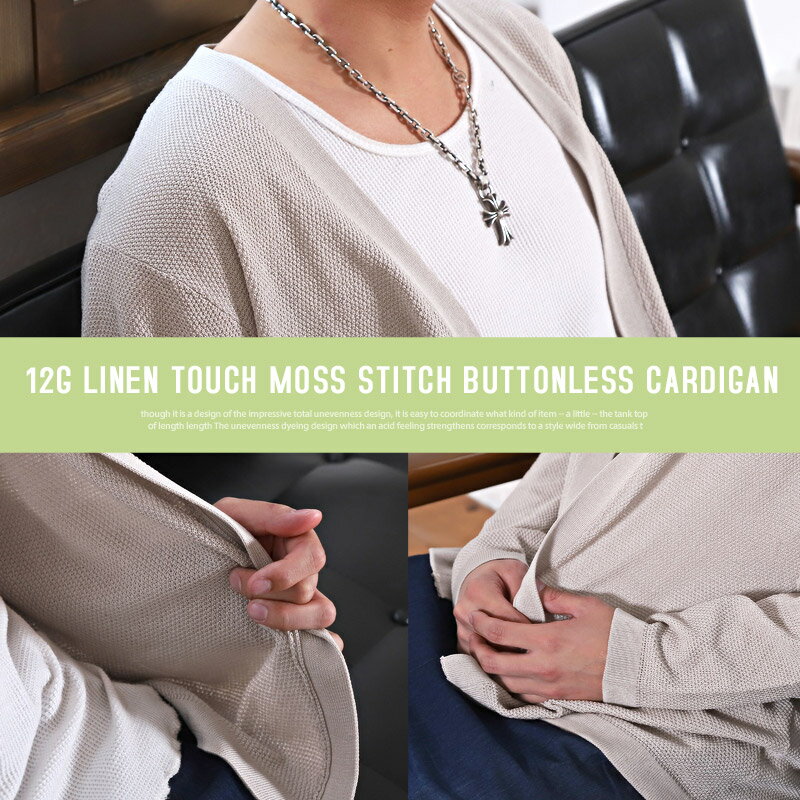 カーディガン メンズ【12G麻タッチ鹿の子編みボタンレスカーディガン】カジュアル 無地 羽織り 薄手 アクリルニット ライトアウター ニットカーデ メンズカーディガン ハイゲージ 鹿の子編み ボタンレス 麻タッチ 春 aa-1384
