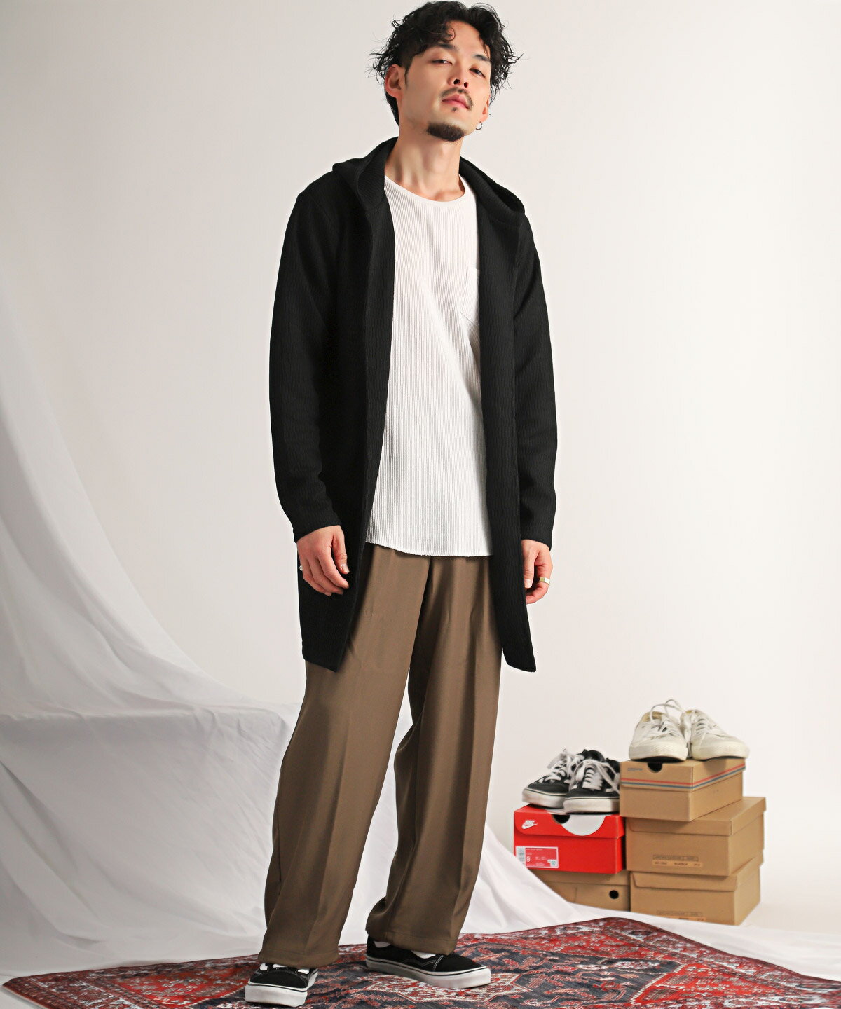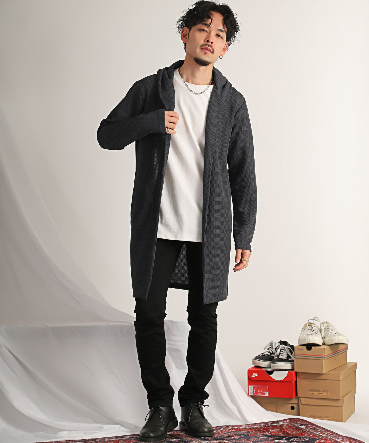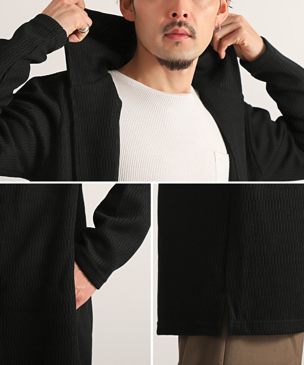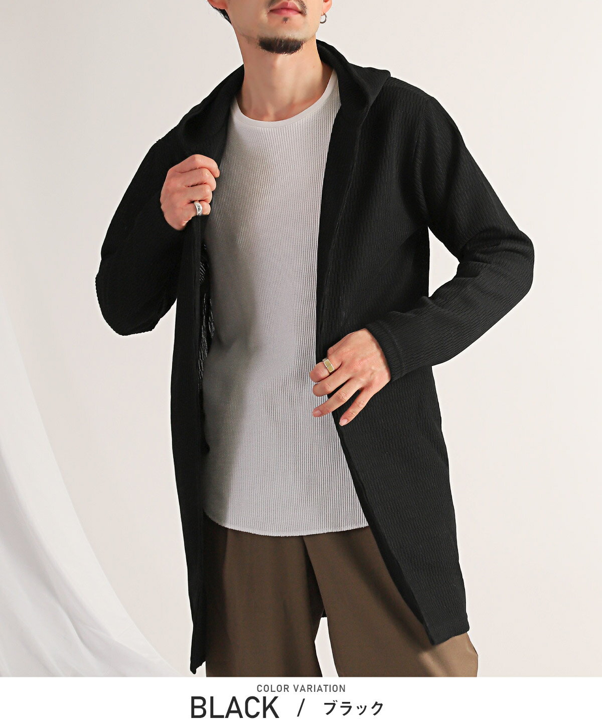 ▲送料無料▲ 【ジャガードニットフーディガン】メンズカーディガン ロングカーデ ジャガードニット 羽織り アウター ブラック グレー カジュアル 大人 フーディガン メンズ カーディガン フード 無地 ボタンレス ガウン ロング丈 春 aa-2965