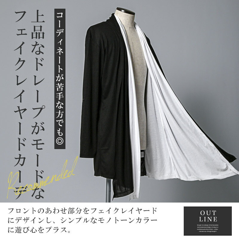 【送料無料】ムラ染めカーディガン メンズ レディース 男女兼用 ドレープ V系 ビジュアル系 ヴィジュアル系 地雷系 ホスト お兄系 バンド ブラック ホワイト ロック レイヤード aa-3207