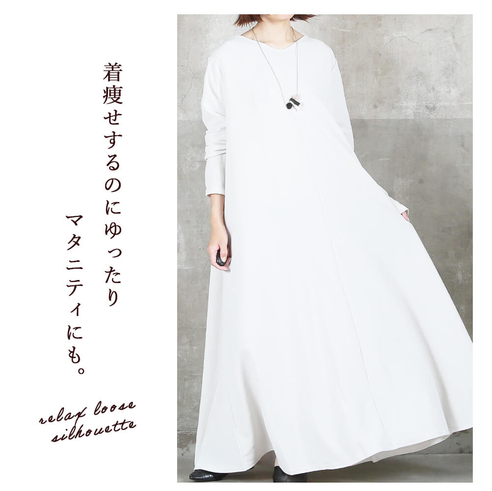 <23:59迄53%OFFクーポンで2669円!2点~>前後で着回し 2way ワンピース 長袖 カジュアル きれいめ レディース ロング カシュクール ゆったり 秋 冬 大きいサイズ ナチュラル おしゃれ エンボス 生地 マキシ 丈 ロング丈 ワンピ aライン 丸首 vネック 無地 フレア 大人