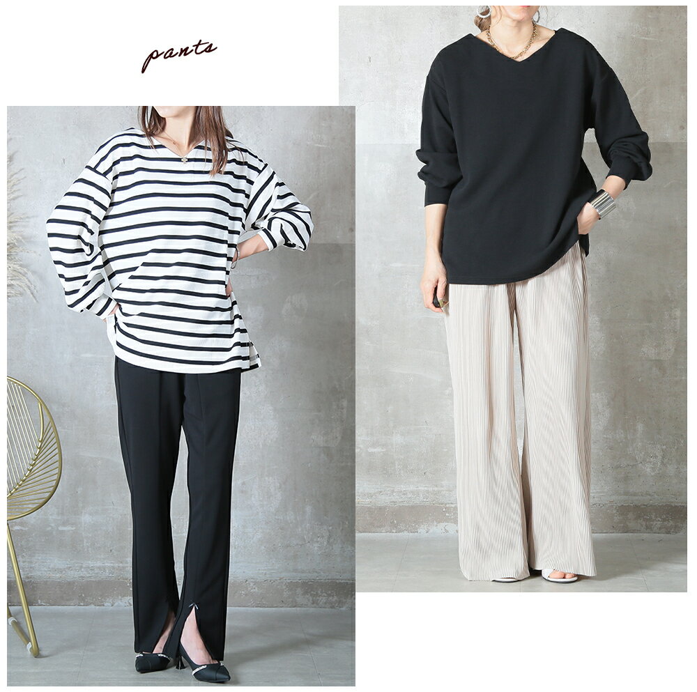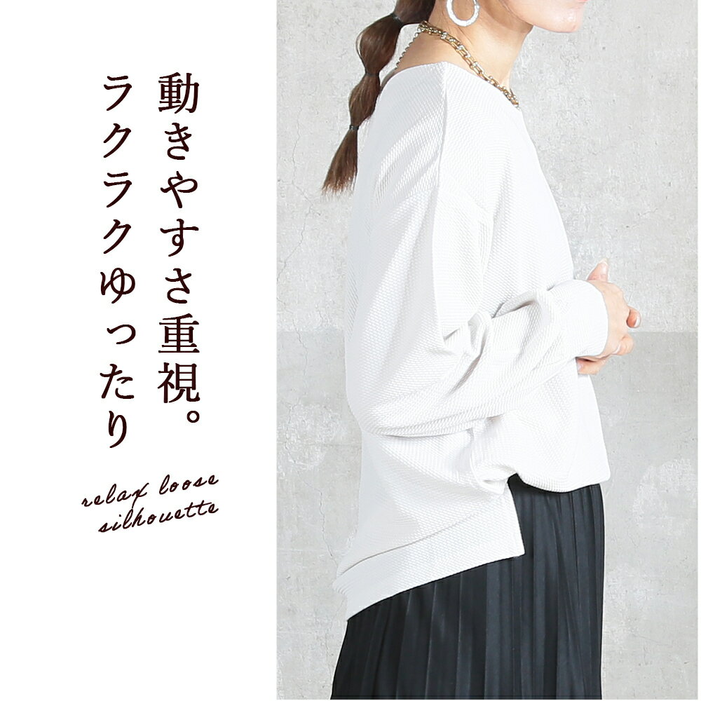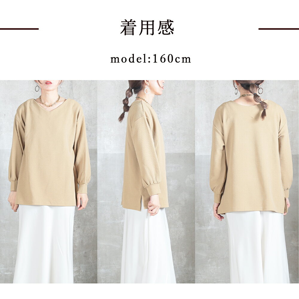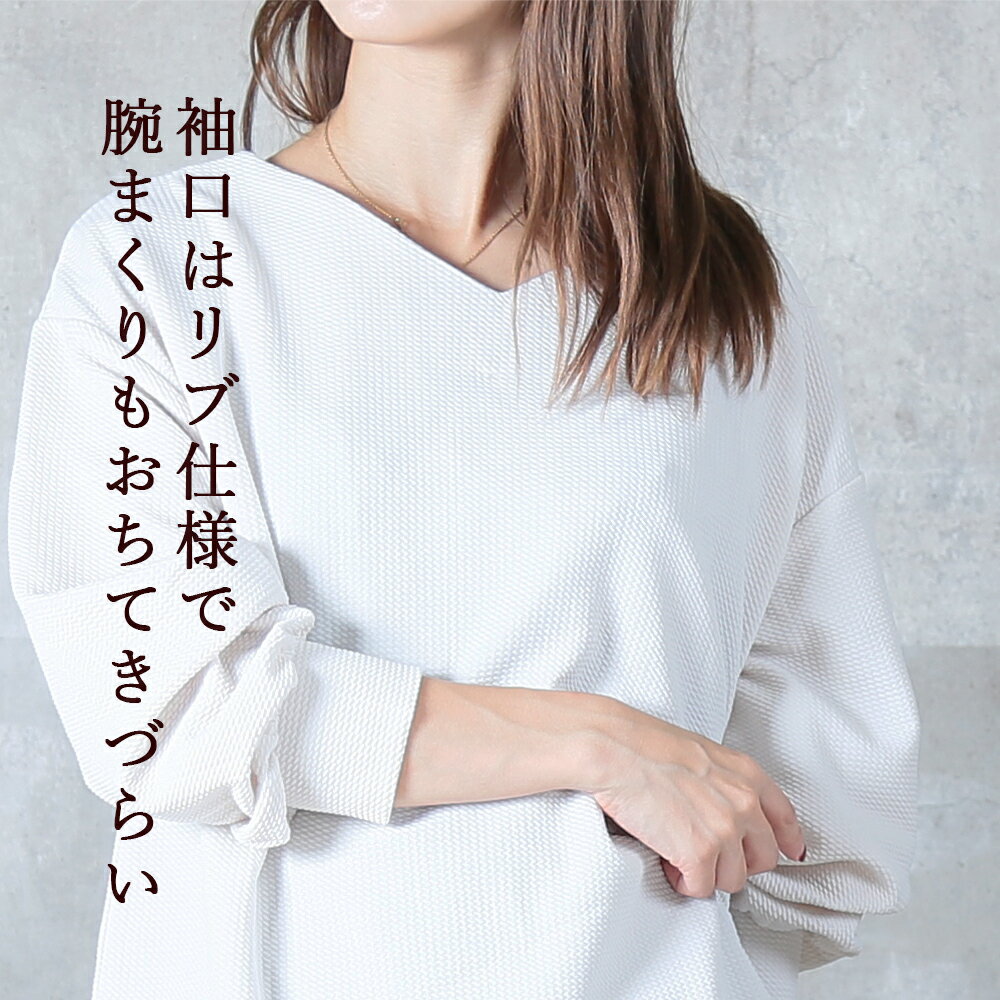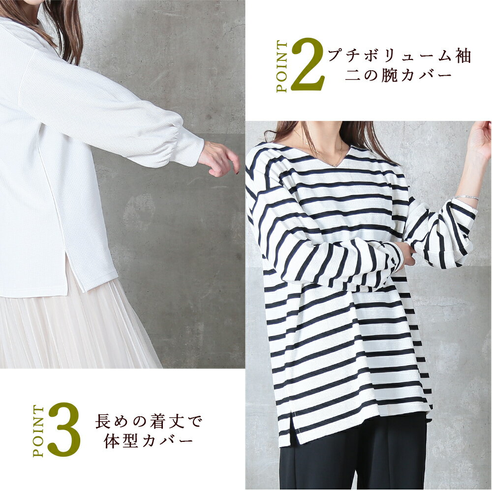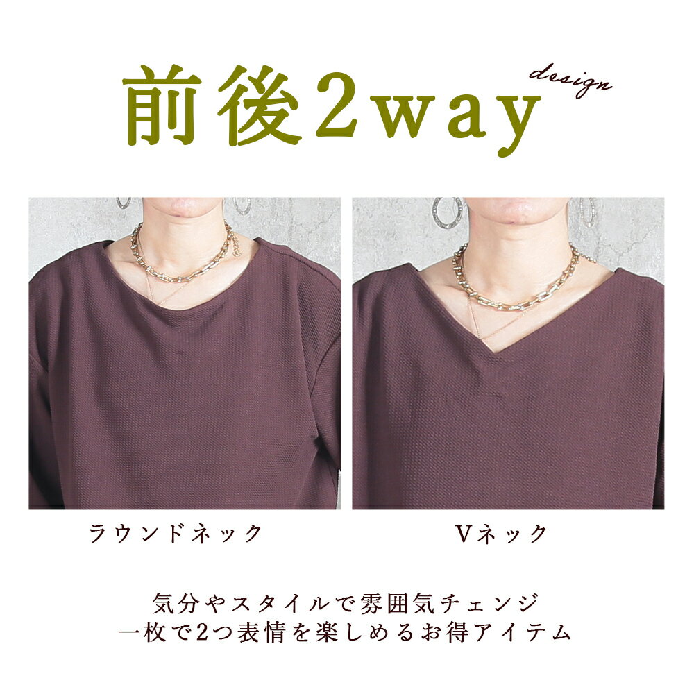 <0時~53%OFFクーポンで1871円!2点~>両面魅せ 2way トップス カットソー エンボス 加工 長袖 9分袖 ゆったり ストレッチ 伸びる ボーダー vネック 丸首 ラウンドネック 黒 レディース tシャツ スリット きれいめ ドロップショルダー プルオーバー 1枚で決まる