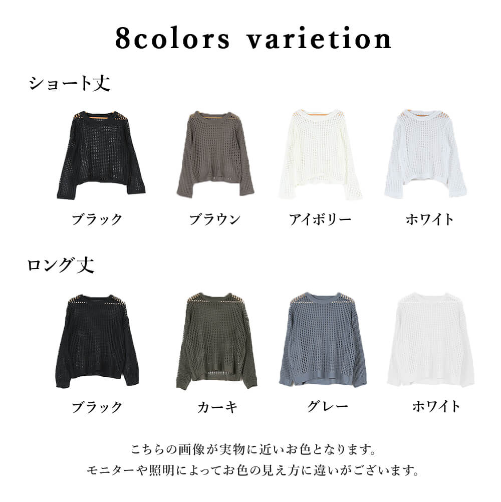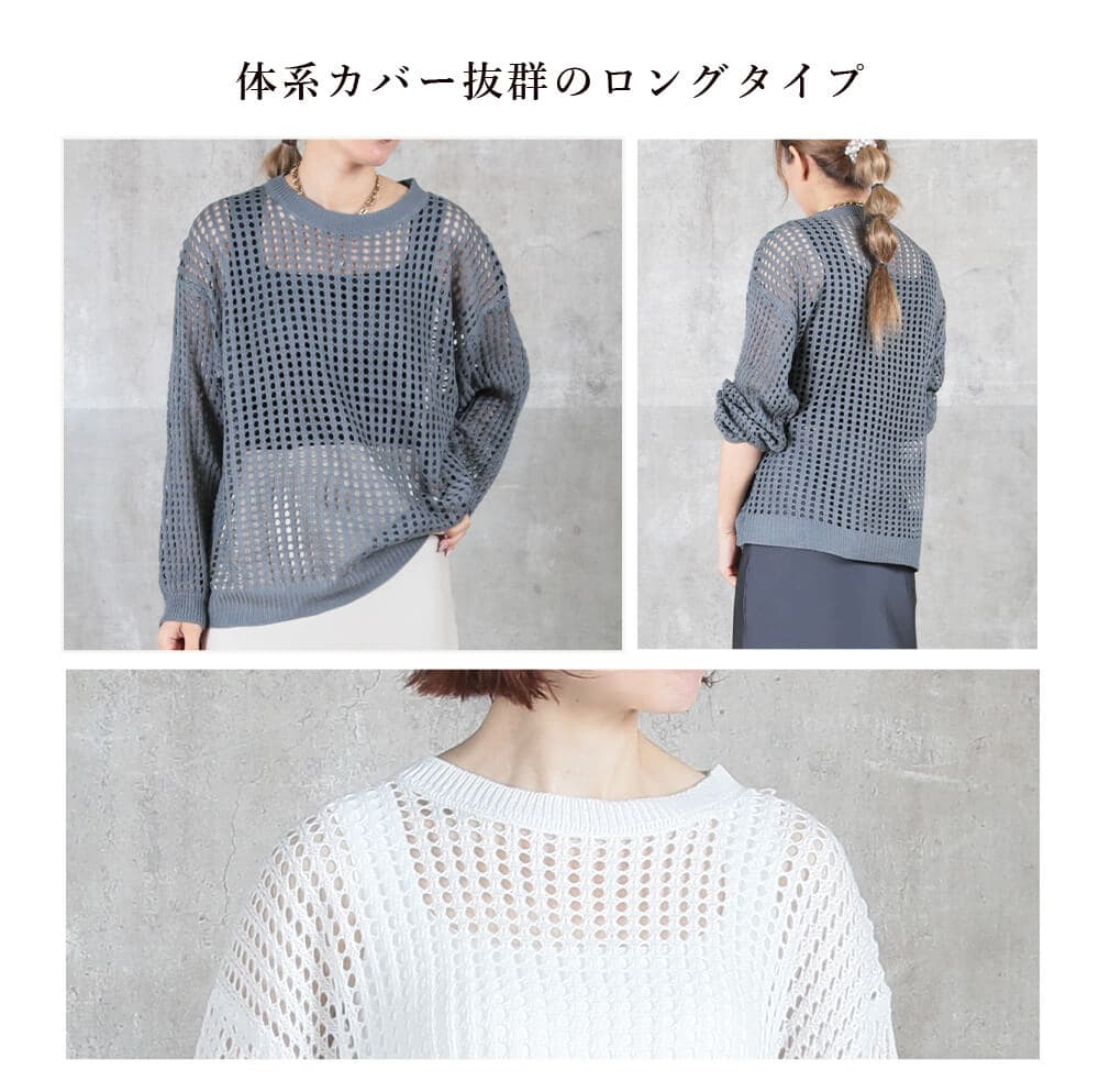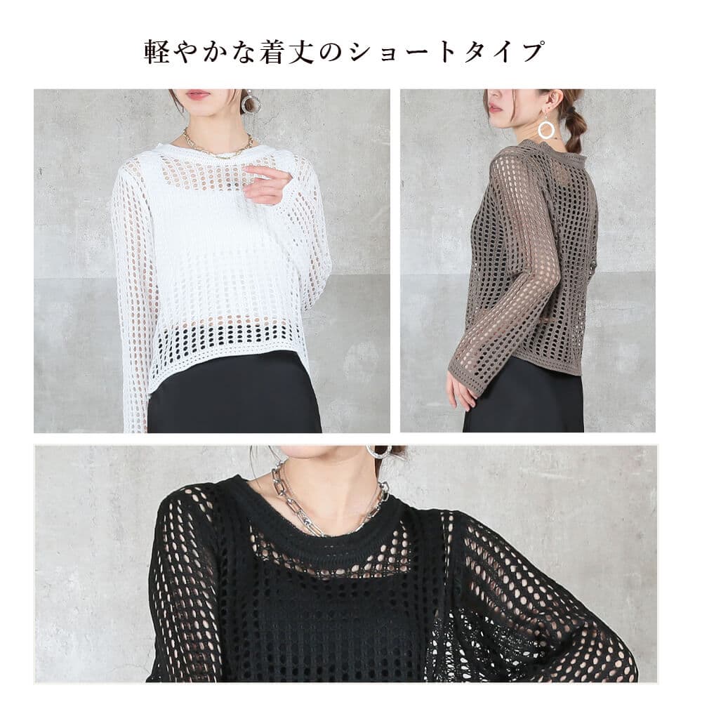 <45%OFFクーポンで2684円!>即納 ニット 透かし編み サマーニット 長袖 レディース ショート丈 肌見せ 春 夏 透け トップス 半袖 セーター uネック 体形カバー ニットソー ミディアム 大きいサイズ ロング丈 メッシュ 編み かぎ針編み シースルー 春服 服