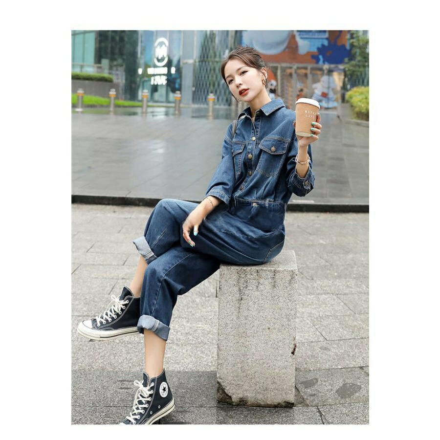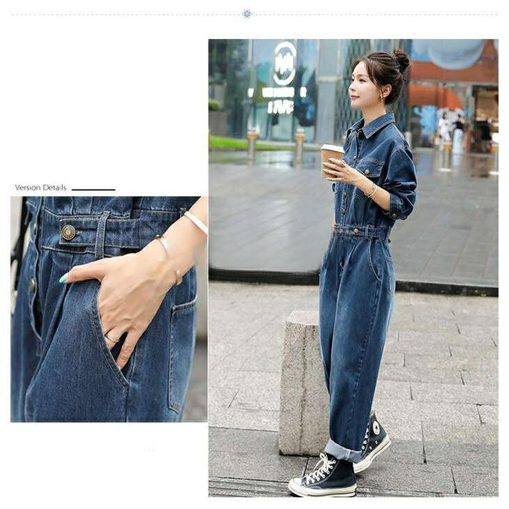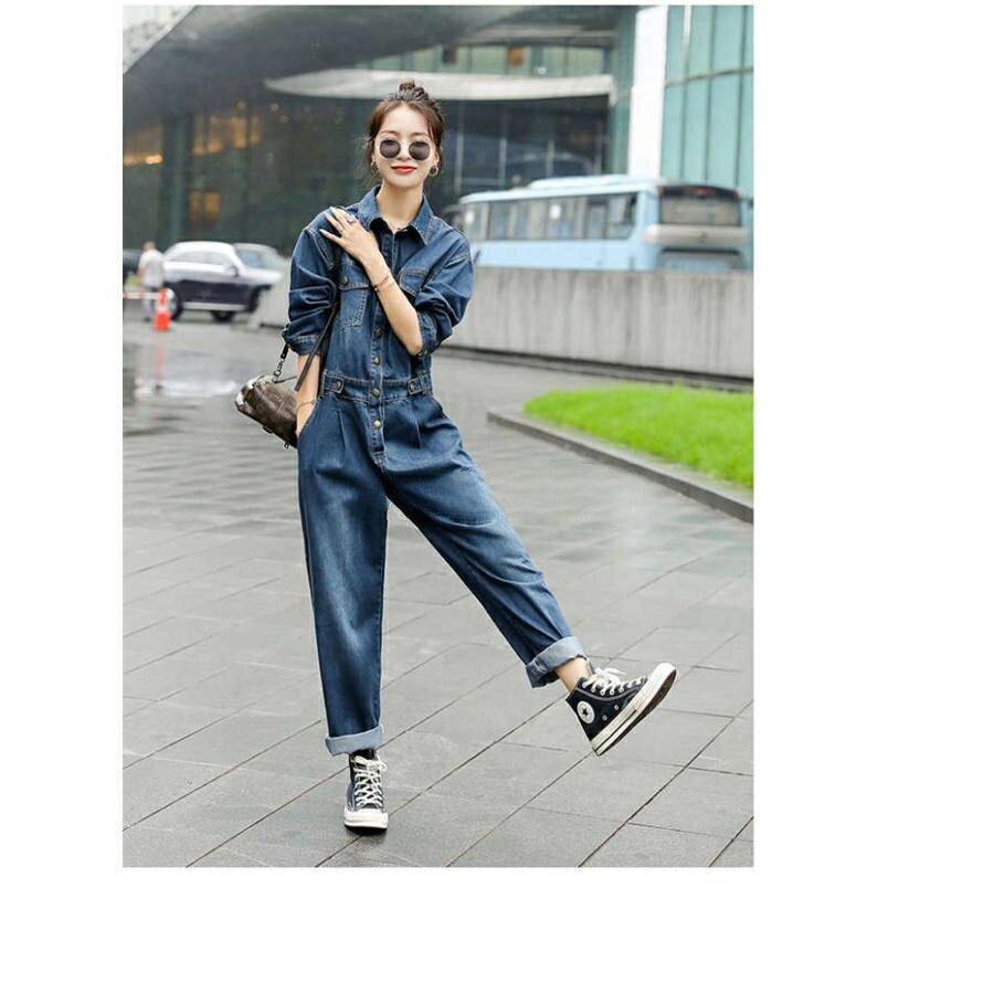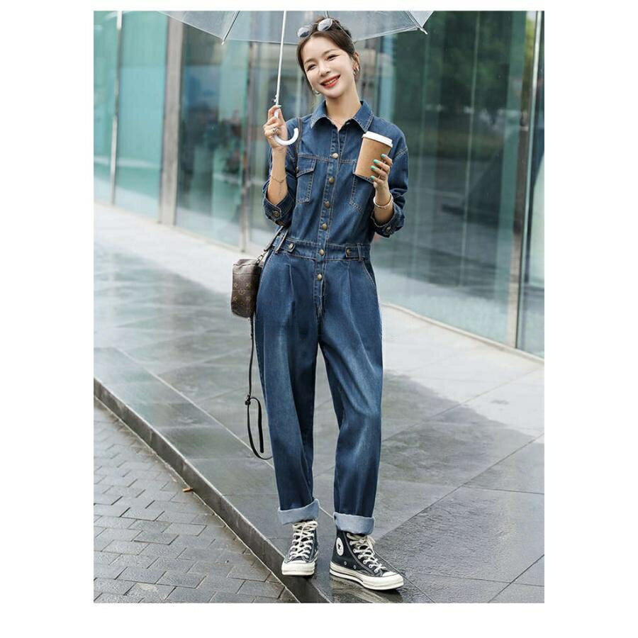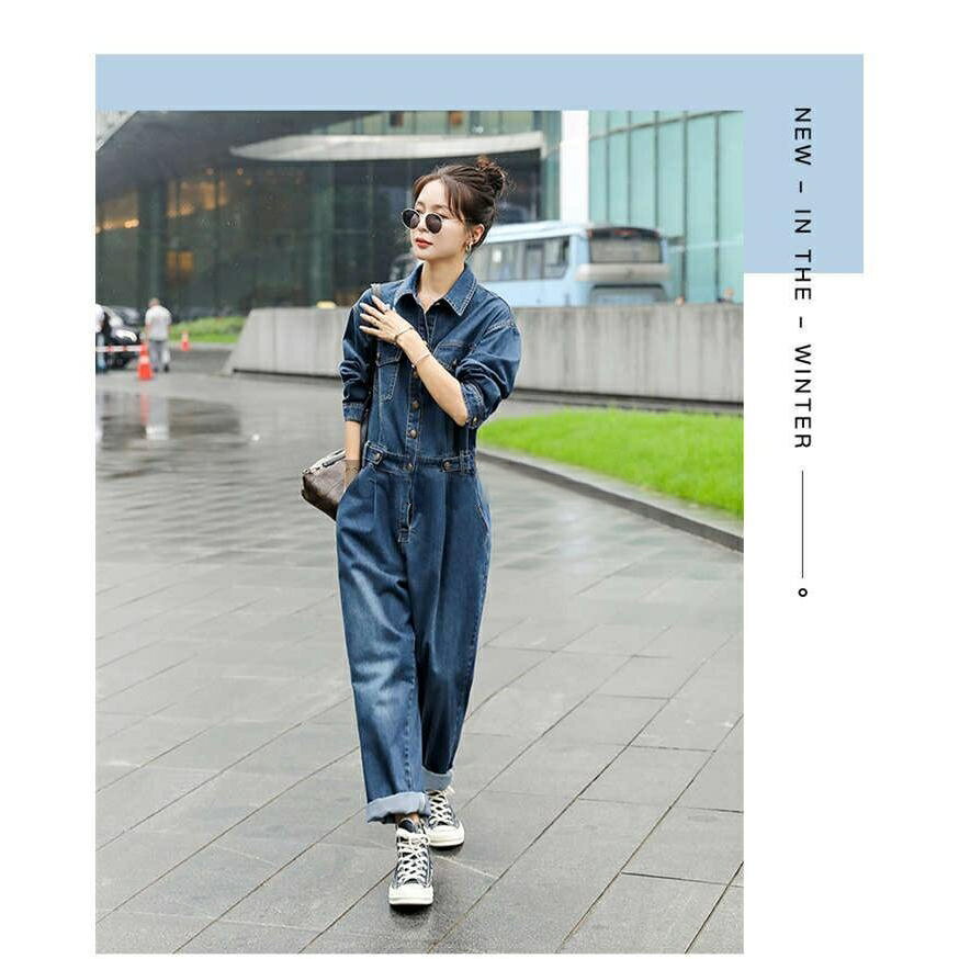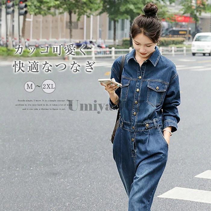 オールインワン レディース デニム 長袖 ワイドパンツ 春 秋 ゆったり 体型カバー 女性らしい お呼ばれ 可愛い 大きいサイズ おしゃれ ゆるっと カジュアル