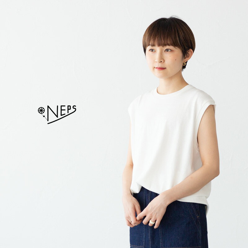 NEPS キュプラ混 吊り編み ノースリーブTシャツ ネップス【レビューキャンペーン対象品】