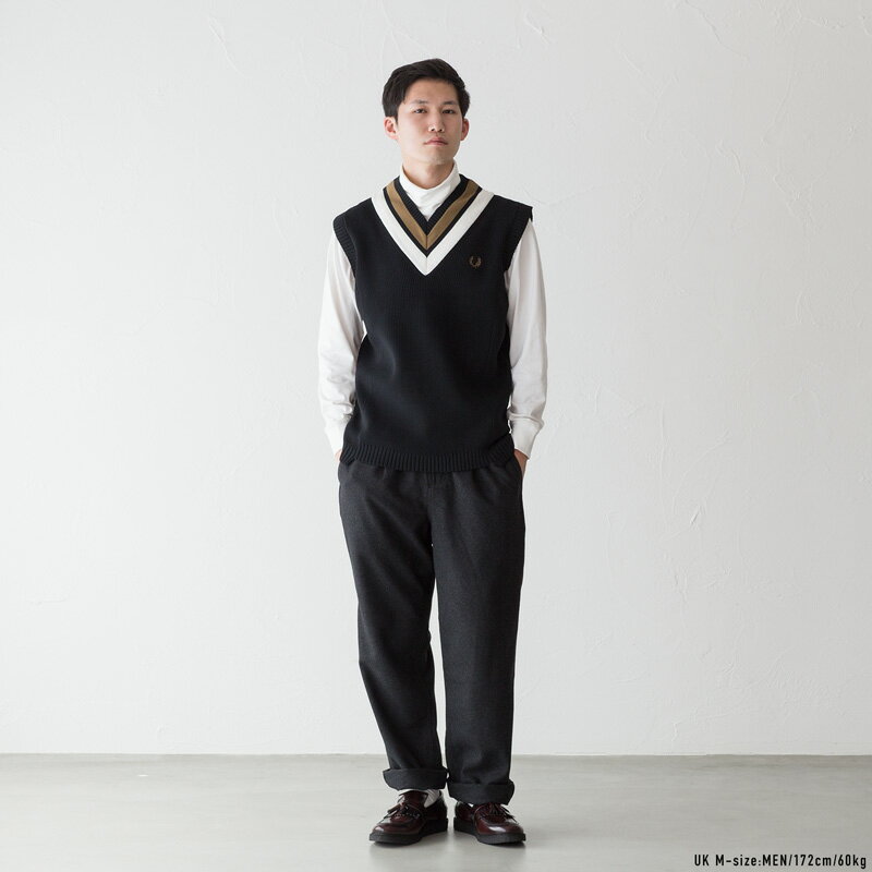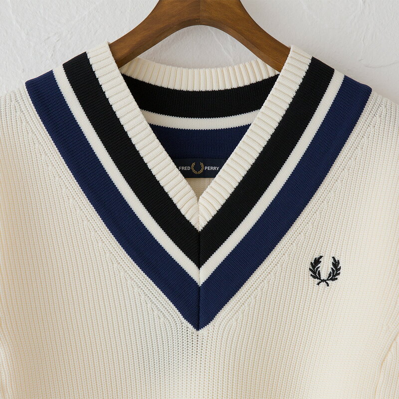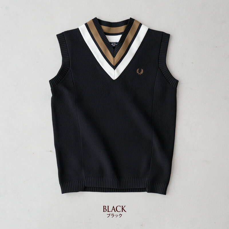 フレッドペリー チルデン ベスト K4527 ストライプド Vネック タンクトップ Striped V-Neck Knitted Tank
