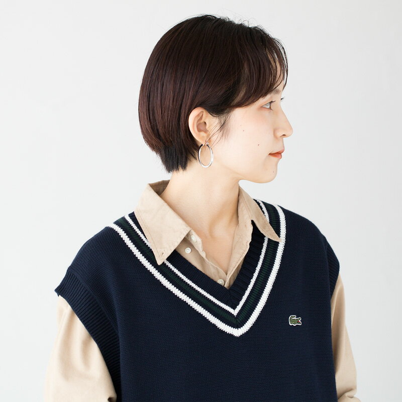 ラコステ コットンポリ ニット チルデンベスト LACOSTE AF010J-99 レディース