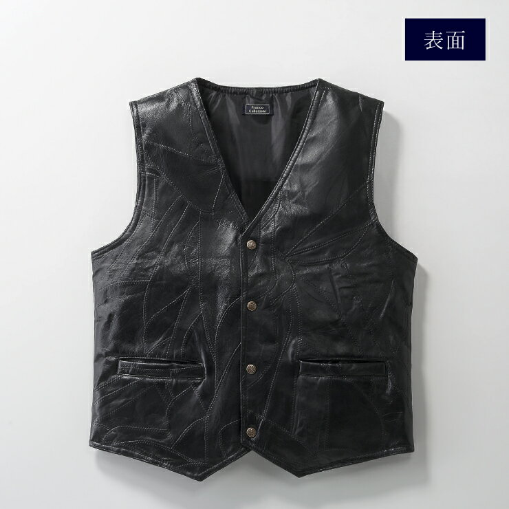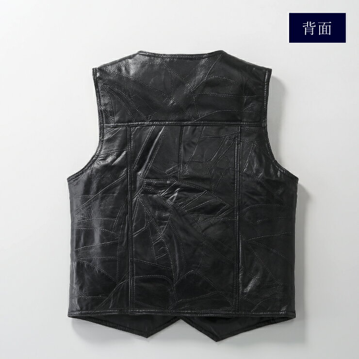 【送料無料】ラム革 パッチワーク ベスト Mサイズ Lサイズ ブラック 黒 ホワイト 白 レザー メンズ 羊革 ライダー 温かい アウター ジャンパー おしゃれ おすすめ コーデ プレゼント 贈り物 贈答品 夏休み お盆 お中元 お中元 ココアルデ