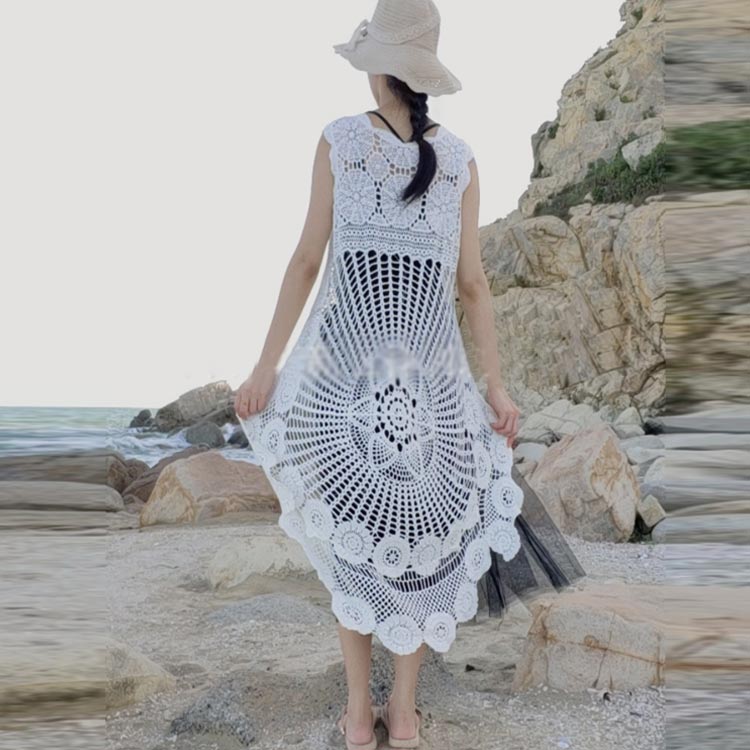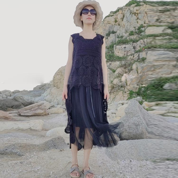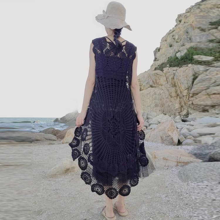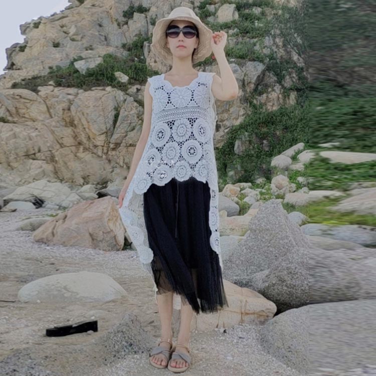 ベスト 総レース ノースリーブ 花柄 刺繍 後ろ長め 重ね着 レイヤード風 ジレ トップス 羽織り ロングベスト 透かし編み タンクトップ レディース ゆったり 着痩せ 海 ビーチ 春夏 旅行 きれいめ お洒落 送料無料