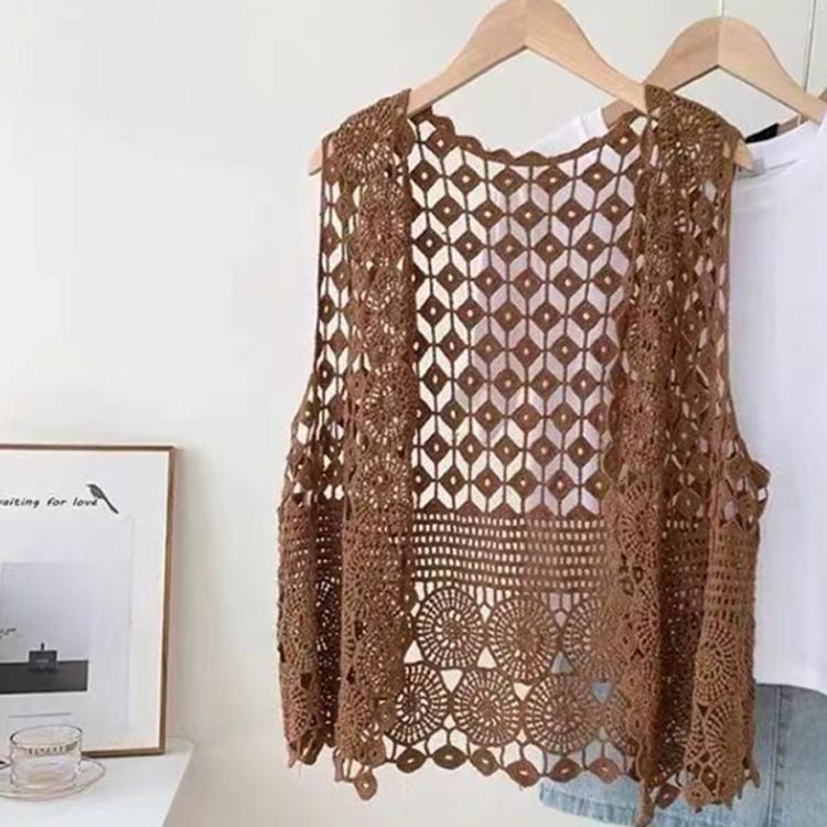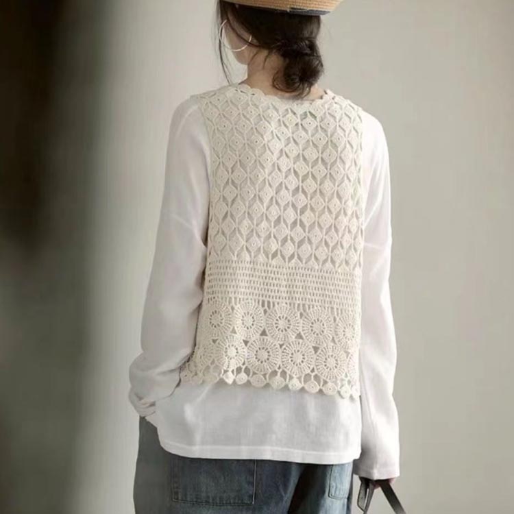 ベスト レディース お洒落 サマーベスト ジレ ニットベスト 前開き トップス 大きいサイズ 春夏 ゆったり 花柄 透かし編み 重ね着 レイヤード風 カジュアル 総柄 通勤 OL 可愛い 送料無料