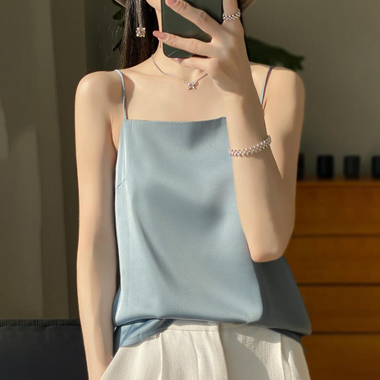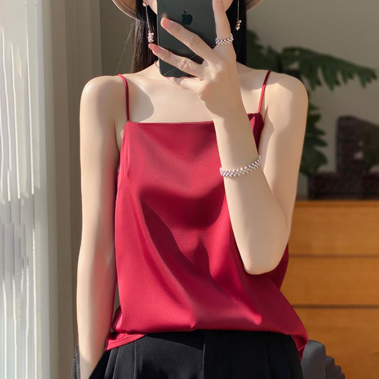 インナー レディース キャミソール インナーキャミイン サテン調 春夏 締めつけない トップス 部屋着 無地 肌着 シルクタッチ レイヤード 重ね着 光沢感 オフィス 上品 フォーマル 送料無料