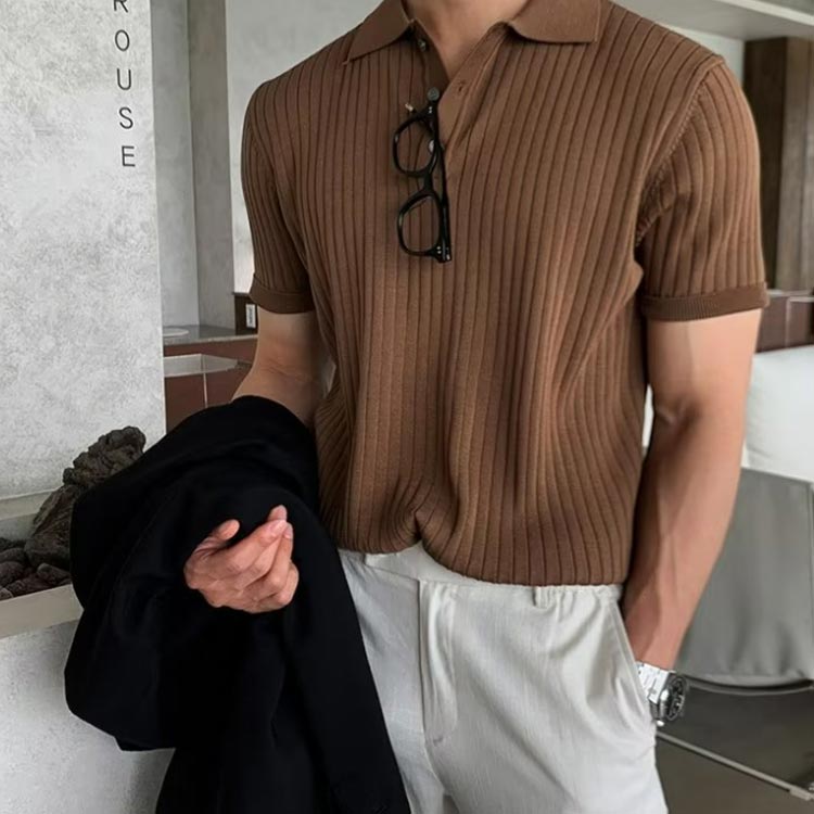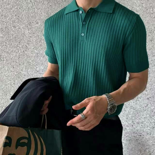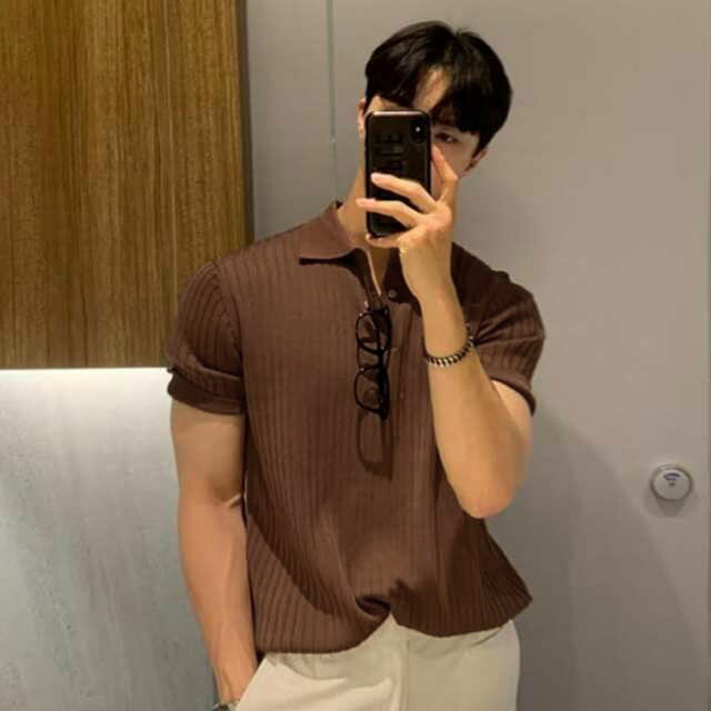 ポロシャツ メンズ 半袖 ニット サマーニット リブニット トップス 薄手 春夏 スリム ビジネス リモートワーク 韓国風 ゴルフ カジュアル 無地 紳士服 送料無料