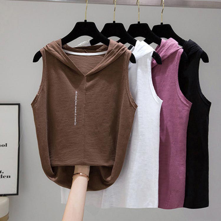 ノースリーブパーカー フード付き 夏 タンクトップ ベスト レディース キャミソール ジレ フード付きtシャツ 袖なし カットソー トップス 吸汗速乾 レイヤード ひんやり 薄手 インナー プルオーバー スウェット 着痩せ お洒落 カジュアル 可愛い 大人 春 夏 秋 送料無料