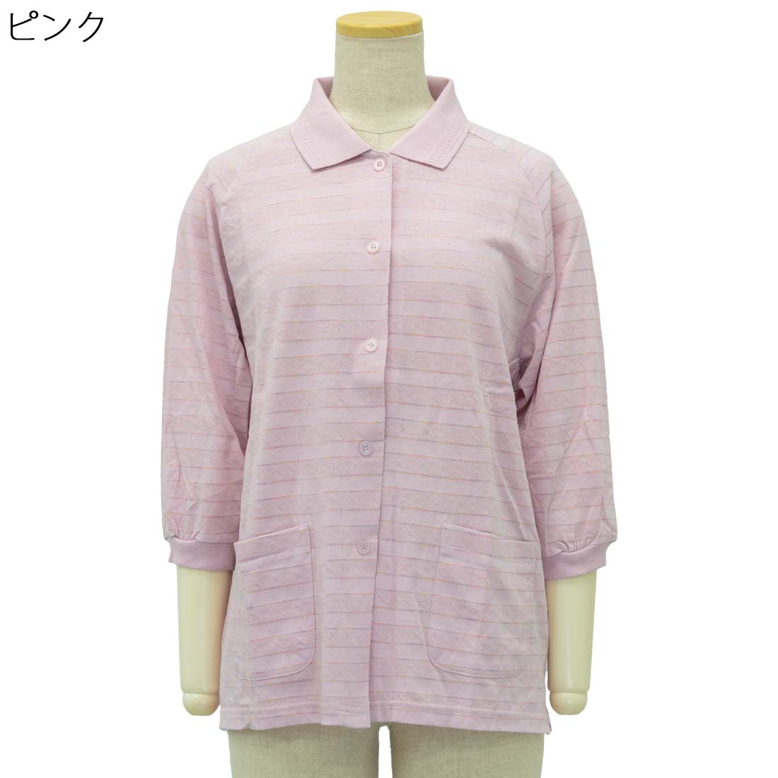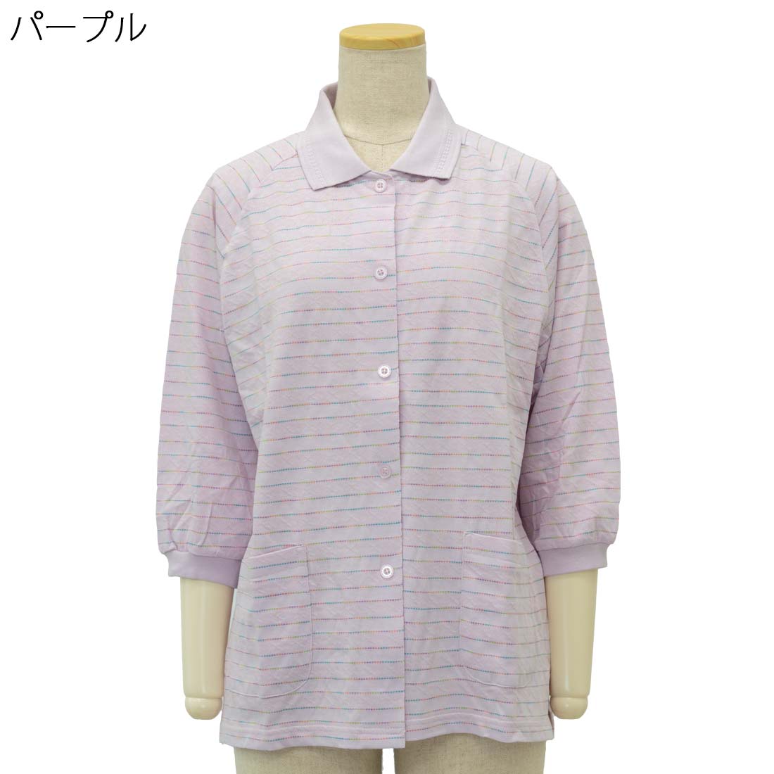 マグネット ボタン 7分袖 ポロシャツ ラグラン 前開き ストレッチ カーディガン シニアファッション 70代 80代 90代 女性 婦人 敬老の日 母の日 ギフト プレゼント 高齢者 介護 服