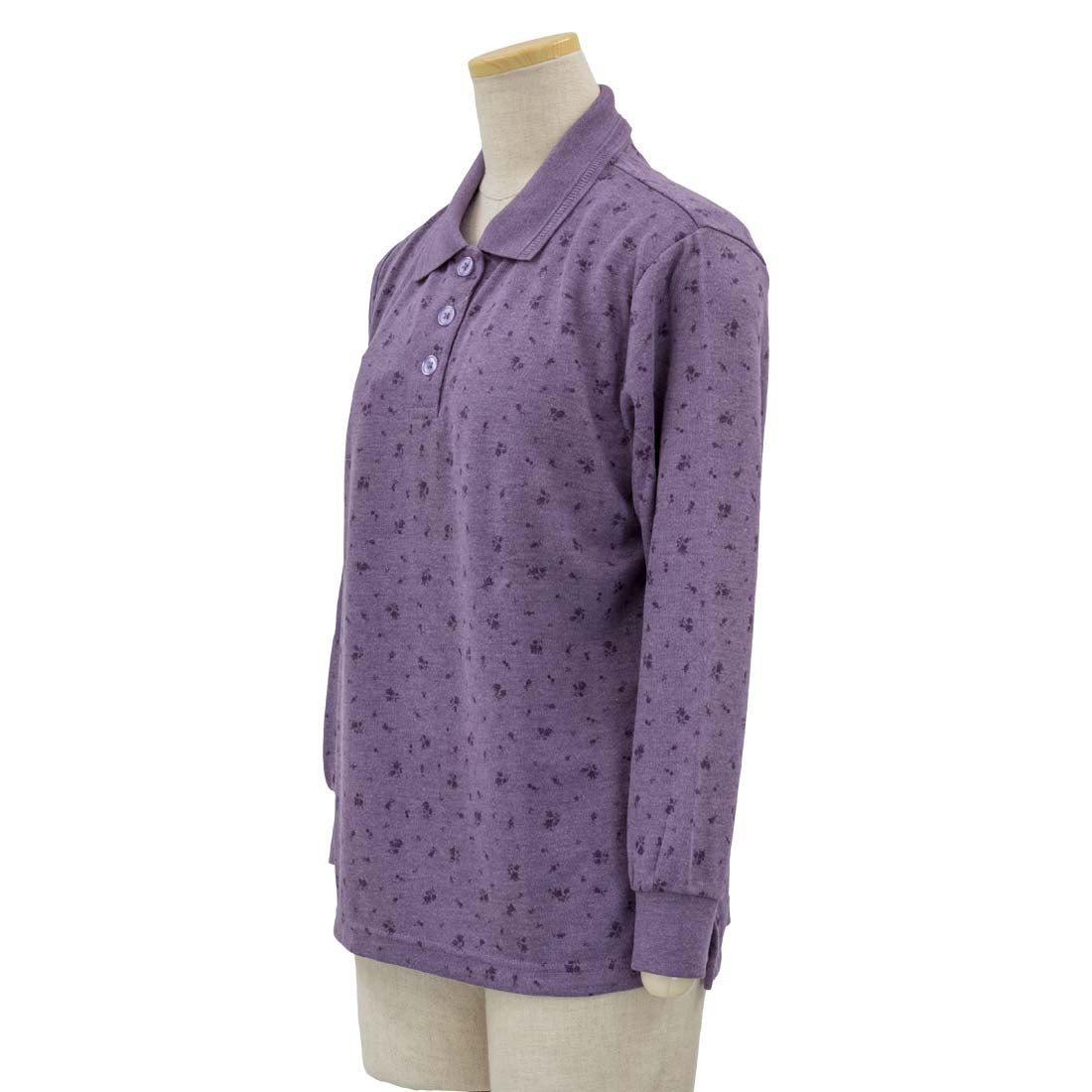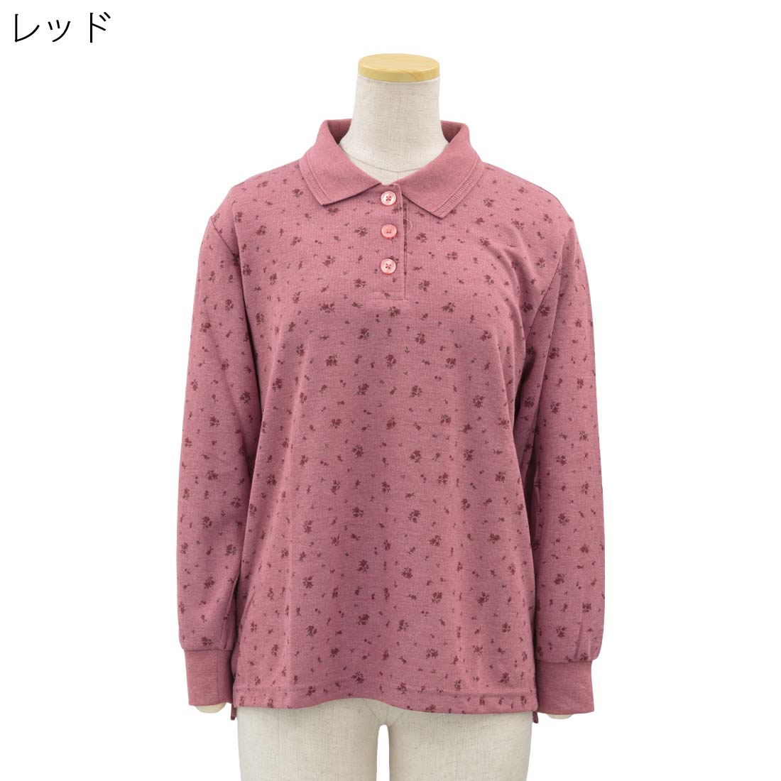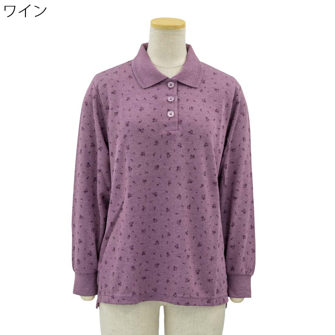 長袖 プリント ポロシャツ シニアファッション 70代 80代 90代 女性 婦人 敬老の日 母の日 ギフト プレゼント 高齢者 介護 服