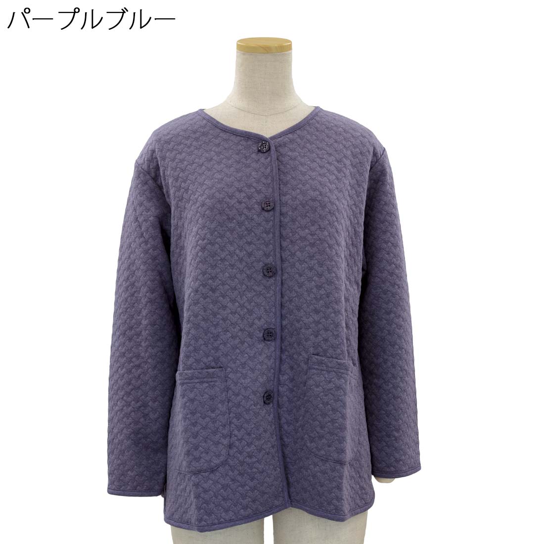 長袖 薄綿 パイピング キルト ななめボタン ゆったり カーディガン シニアファッション 70代 80代 90代 女性 婦人 敬老の日 母の日 ギフト プレゼント