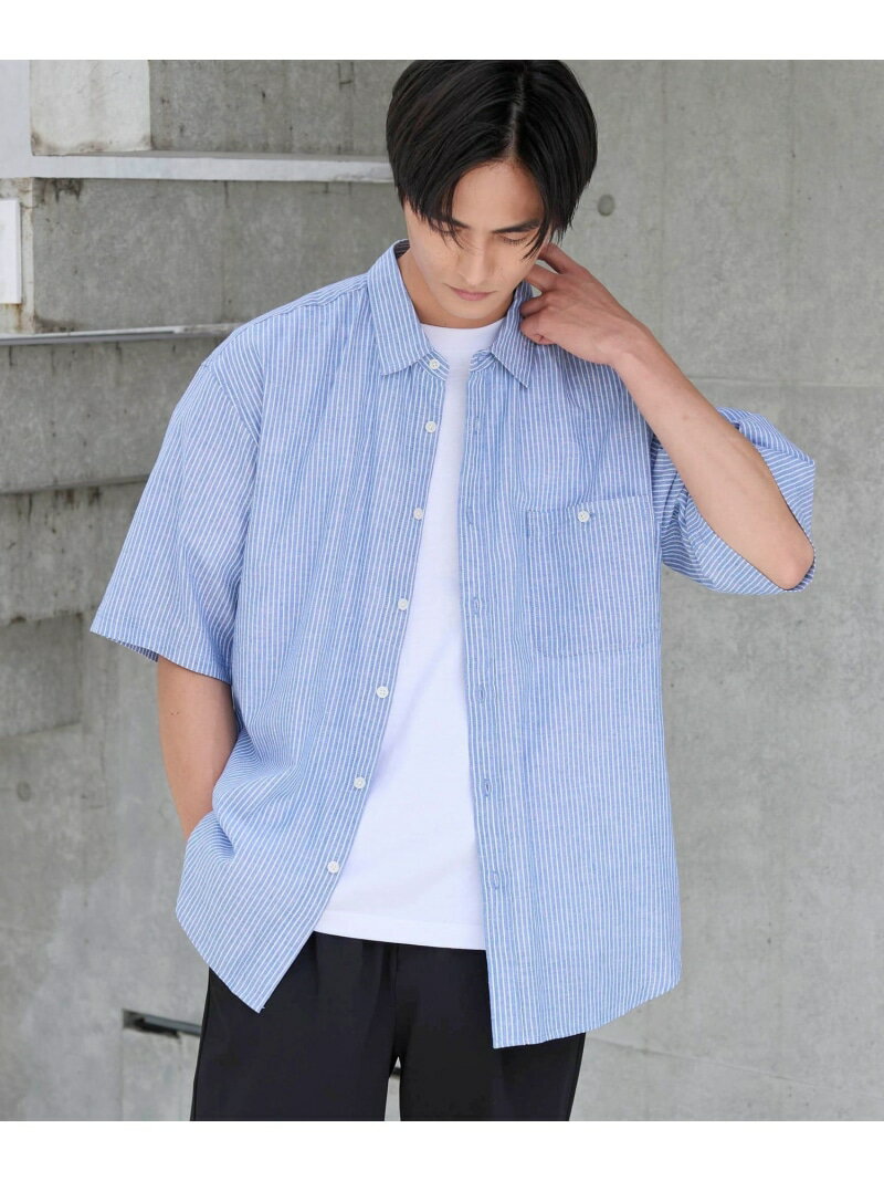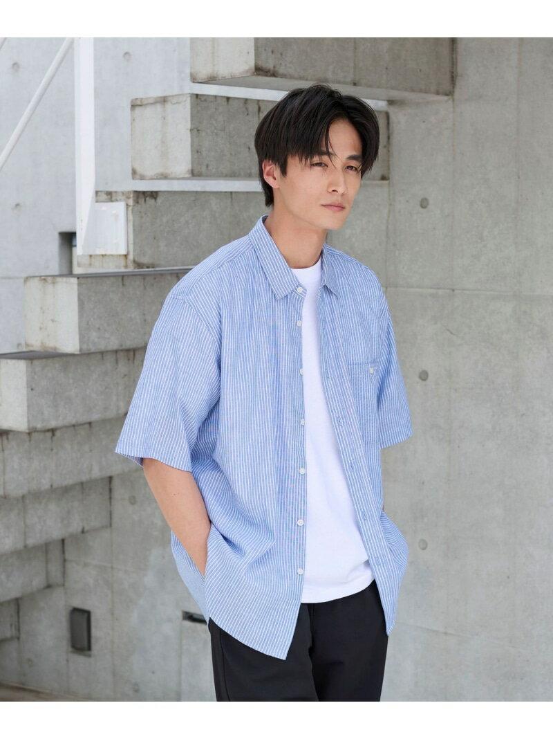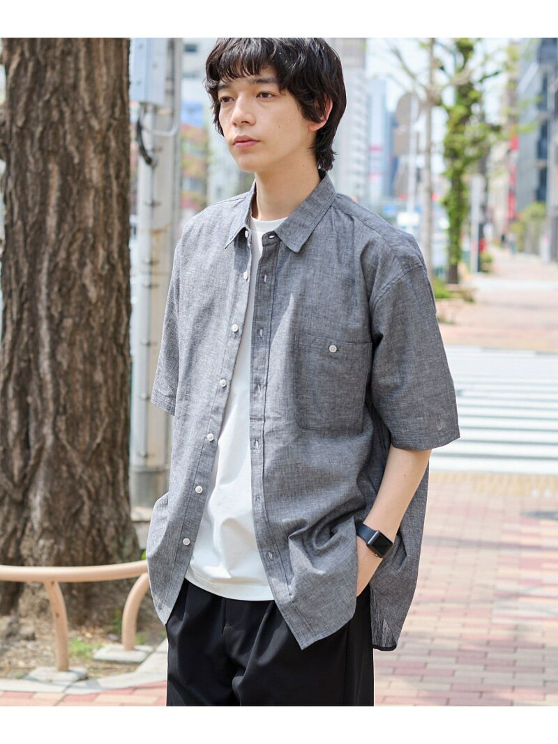 【父の日ギフトにもおすすめ】リネンコットンショートスリーブシャツ coen コーエン トップス シャツ・ブラウス ブルー ホワイト ネイビー パープル【送料無料】[Rakuten Fashion]