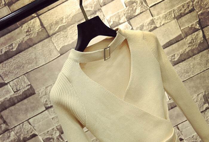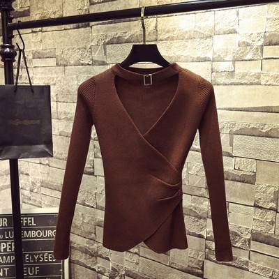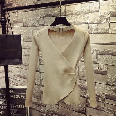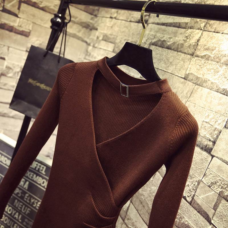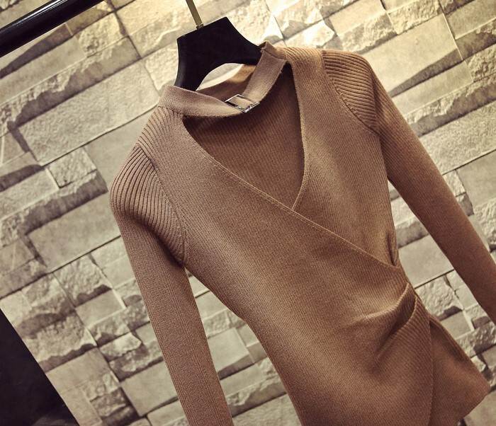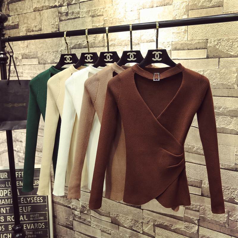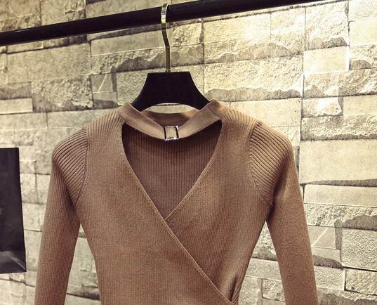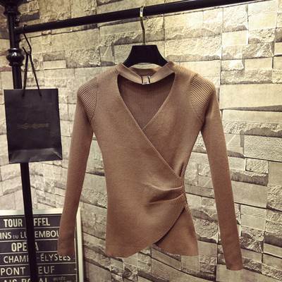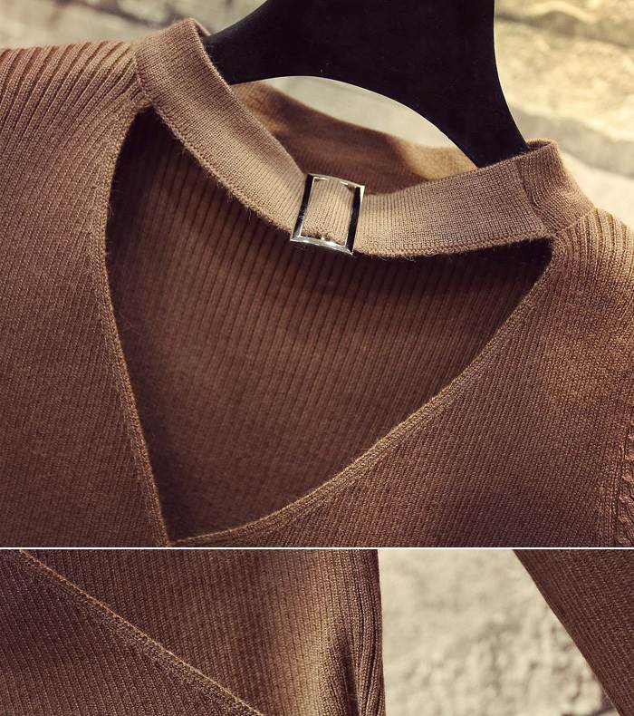 トップス セーター ニット ホルターネック Vネック 長袖 鎖骨見せ プルオーバー スリムフィット シンプル 大人可愛い きれいめ カジュアル 上品 おしゃれ 大人女子 こなれ感 ラブリー キュート シック エレガント モダン 重ね着 無地 春 秋 冬 10代 20代 30代 40代 50代