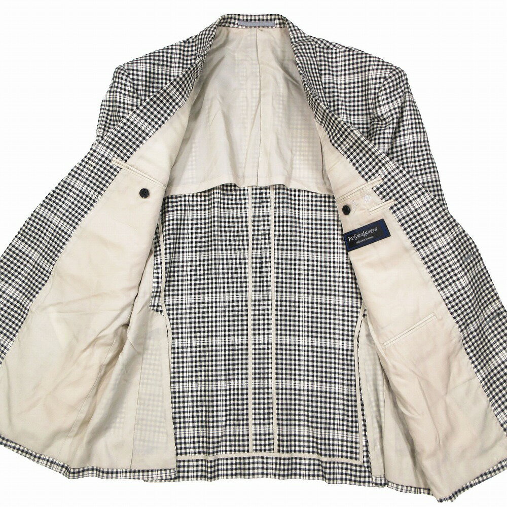 Vintage Yves Saint Laurent イヴサンローラン チェック柄 テーラード ジャケット 2B ブレザー シルク ウール 黒白 メンズ 【中古】
