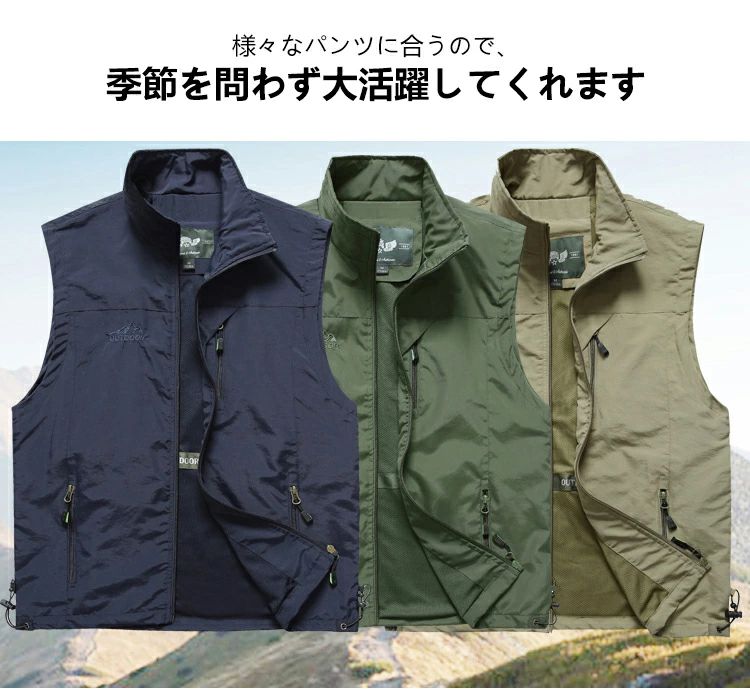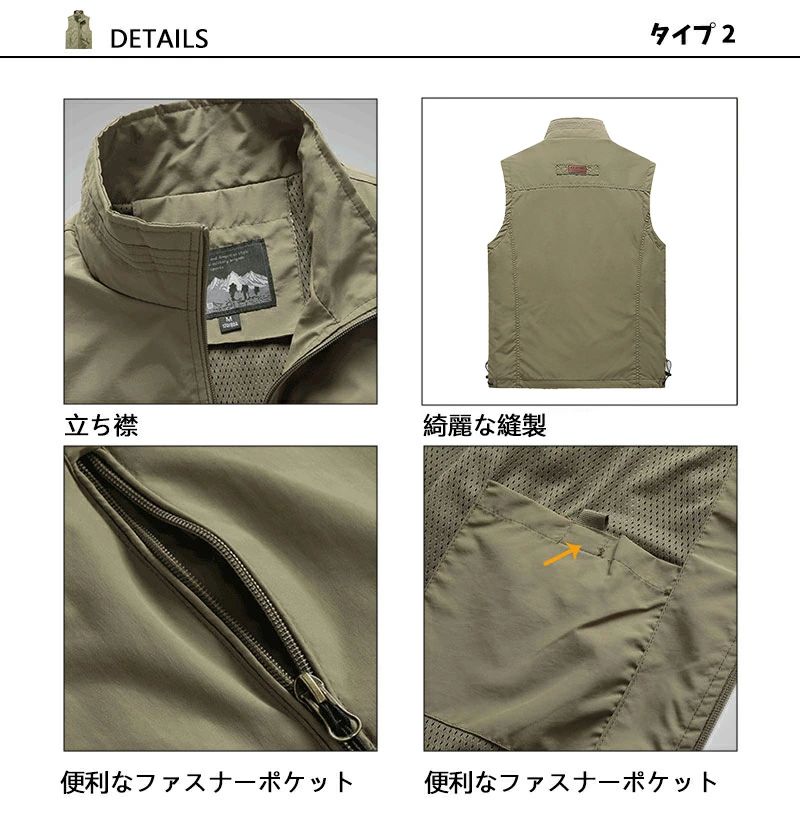 【楽天スーパーSALE】S-8Lあり!!2着で送料無料/ベスト 軽量ジレ メンズベスト チョッキ 多機能2タイプ 多ポケットサマーベストベストアウトドアウエアー ベスト釣りカメラマンベストゆったり涼しい 撥水旅行 散歩 紳士 父の日
