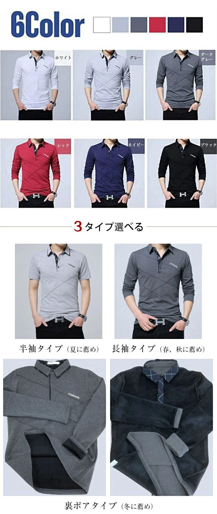 ポロシャツ メンズ 長袖 半袖 春 夏 秋 冬 裏ポア 綿 ゴルフシャツ ロンT メンズスプリング カットソー トップス ゴルフウェア メンズ カジュアル 保温性 秋物 インナー暖かい裏起毛 スポーツポロシャツ 大きいサイズ