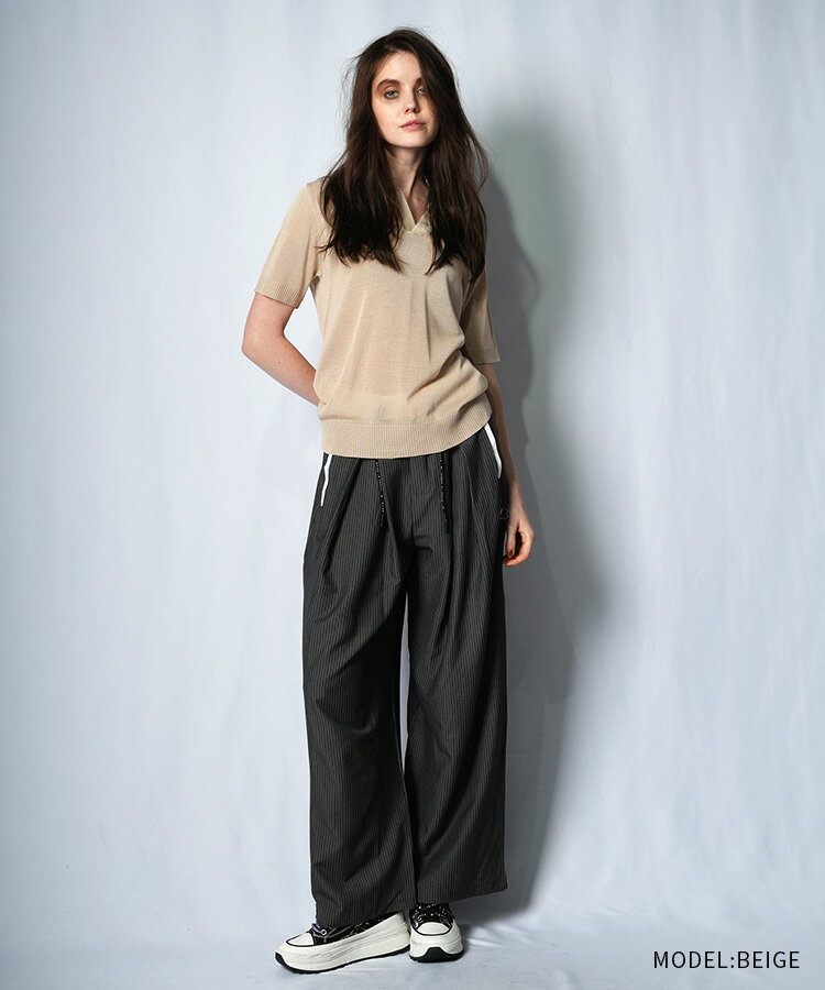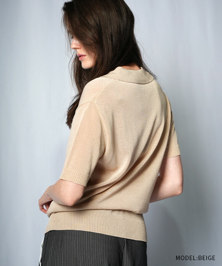 《 COOLA ロゴ ポロ TOPS ベージュ 【 送料無料 】 》 トップス サマーニット 透け感 薄手 半袖 ティーシャツ ワッペン 春 夏 秋 冬 オールシーズン 新作 個性的 シンプル カジュアル キレイ目 スポーティ ストリート モード ファッション レディース レディースファッション