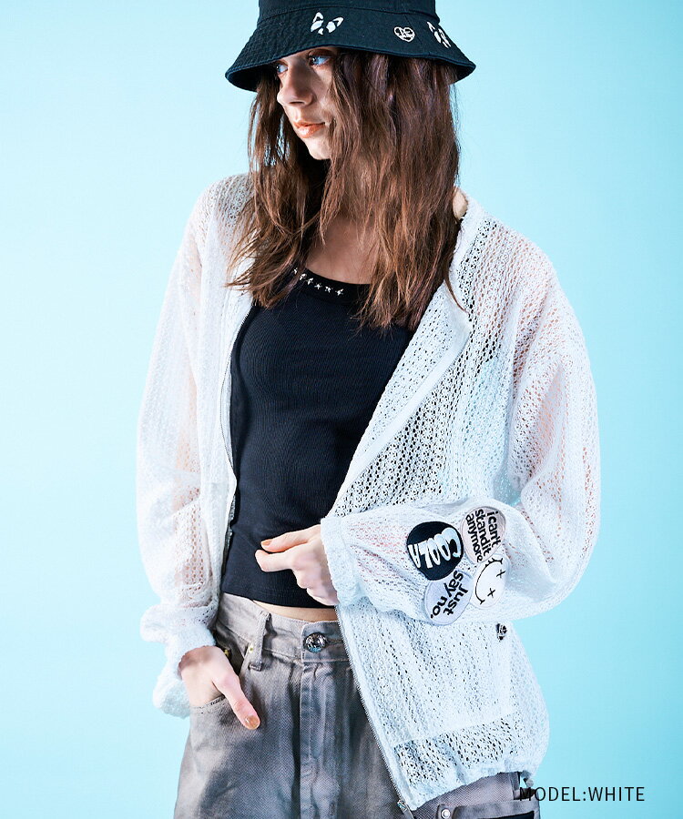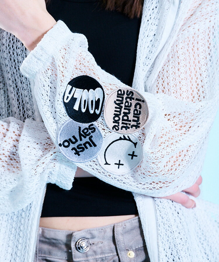 《 COOLA パッチ ローゲージ ニット ブルゾン ホワイト 》 クーラ アウター OUTER ライトアウター 羽織り ジップブルゾン ニットブルゾン サマーニット ワッペン ドロスト 冷房対策 紫外線対策 おしゃれ レディース レディースファッション カジュアル キレイめ スポーティ