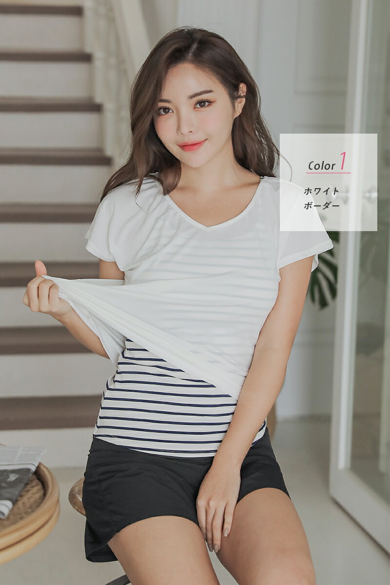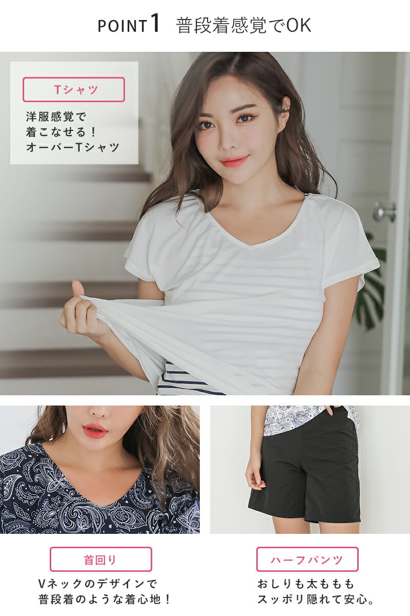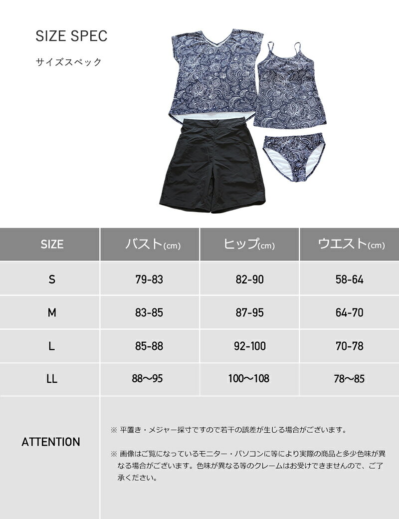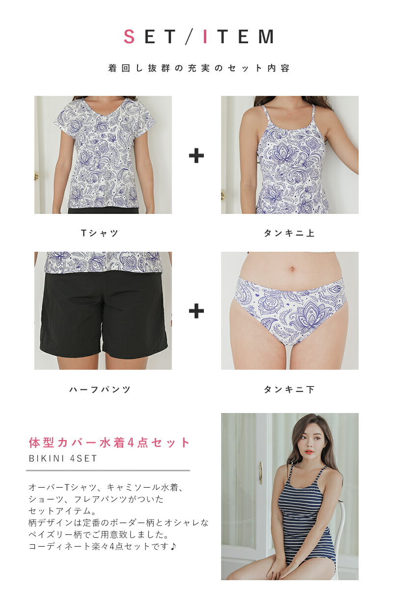 水着 レディース 体型カバー タンキニ キャミソール Tシャツ ショートパンツ 4点セット UVカット ボーダー ペイズリー 大きいサイズ 体型カバー水着 ママ水着 30代 40代 50代 オトナ女子 可愛い 人気 COTARON コタロン【送料無料】