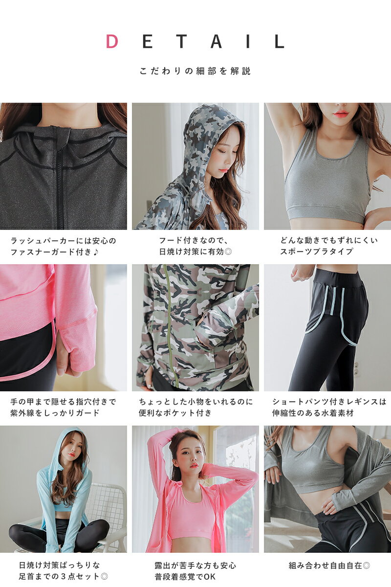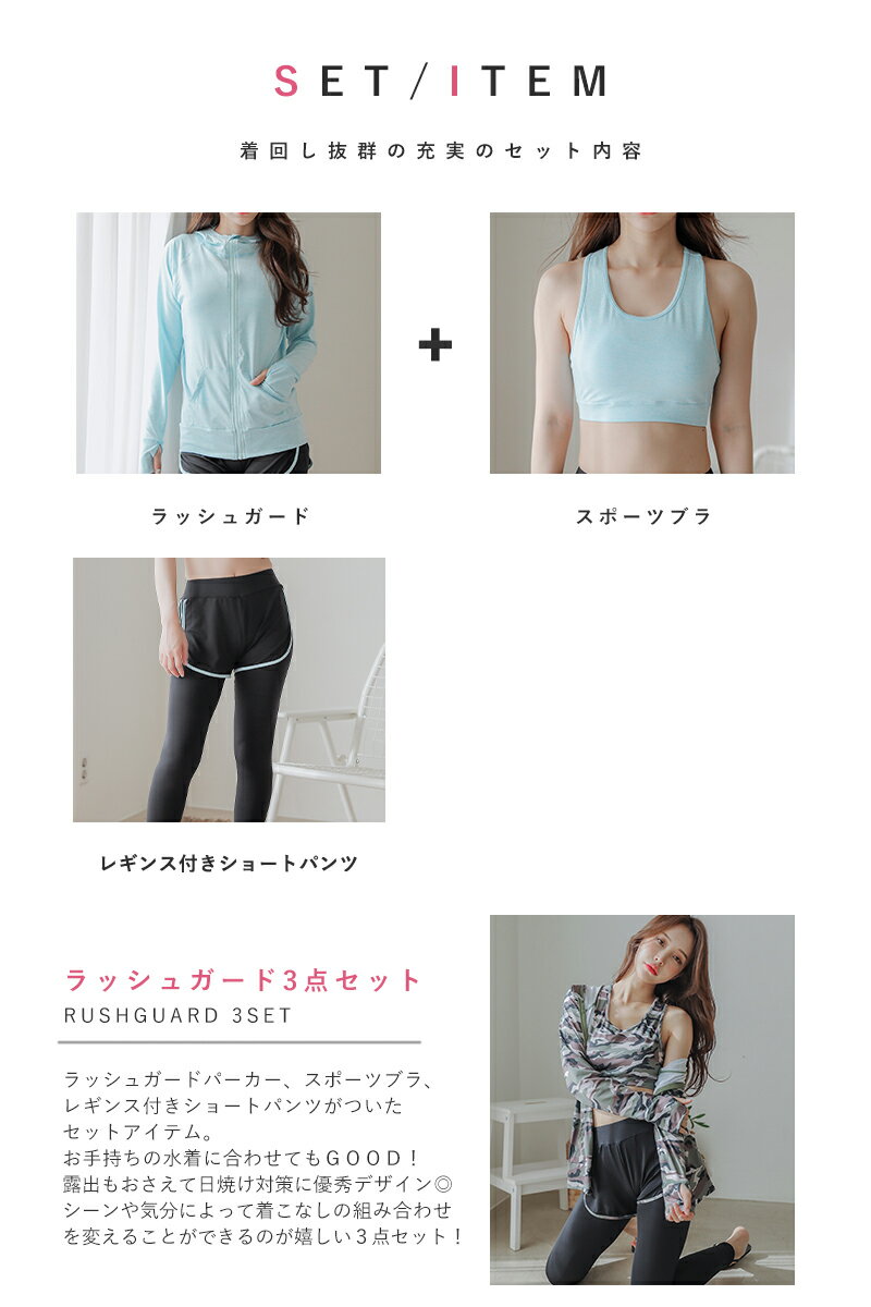 【フィットネスやジムでも!!】水着 レディース ラッシュガード 体型カバー パーカー スポーツブラ ショートパンツ レギンス 3点セット スポーツ ジム フィットネス ヨガ ウェア 上下 体型カバー水着 ママ水着 30代 40代 人気 COTARON コタロン 送料無料