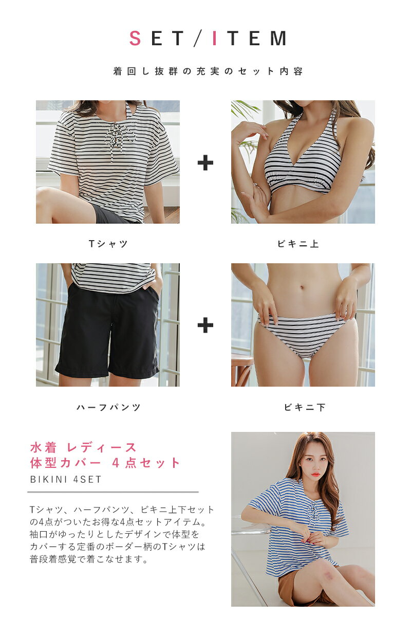 【 在庫処分セール☆ 大幅値下げ 】 水着 レディース 体型カバー 4点セット ビキニ ハーフパンツ Tシャツ ショーツ タンキニ カバーアップ 大きいサイズ 体型カバー水着 ママ水着 30代 40代 50代 オトナ女子 かわいい 可愛い 人気 COTARON コタロン【送料無料】
