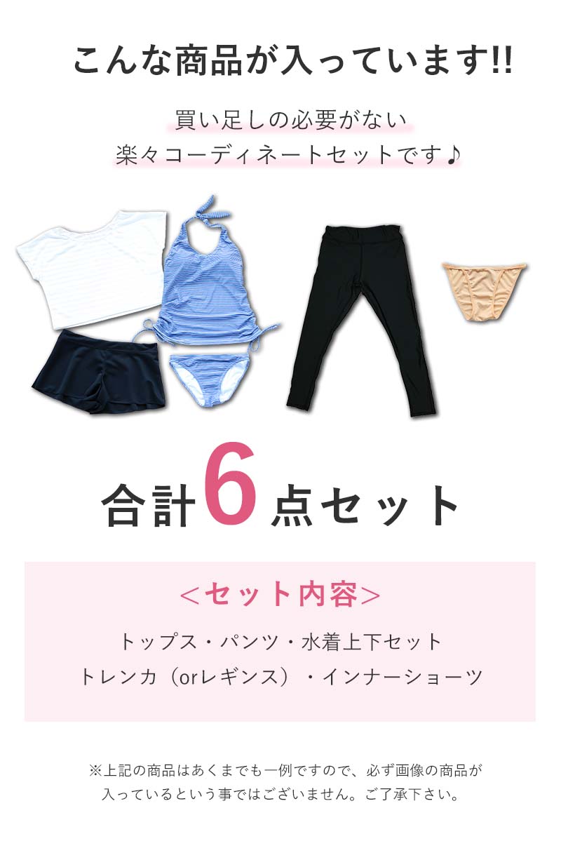【福袋】水着 レディース 体型カバー ママ水着 30代 40代 50代 大人 女子 セット水着 かわいい おしゃれ タンキニ ビキニ ショートパンツ トレンカ インナーショーツ 6点セット 白 黒 可愛い COTARON コタロン【送料無料】