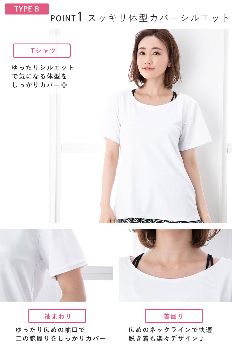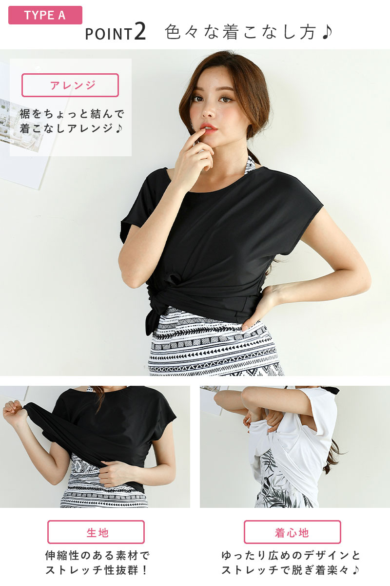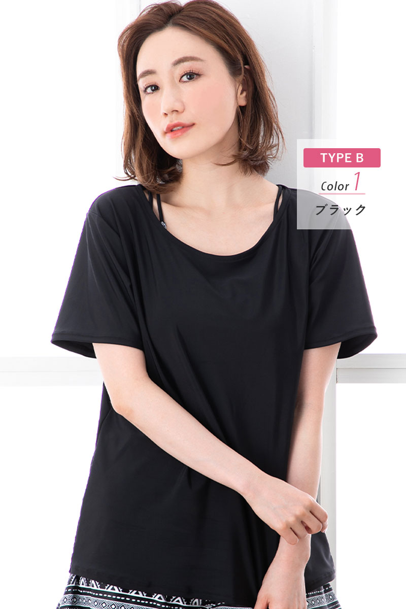 【UVカット】水着 レディース 体型カバー オトナ女子 ラッシュガード オーバーTシャツ Tシャツ 透けない 紫外線対策 日焼け対策 UVカット UPF50+ 白 黒【送料無料】