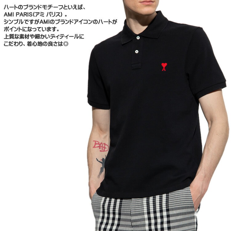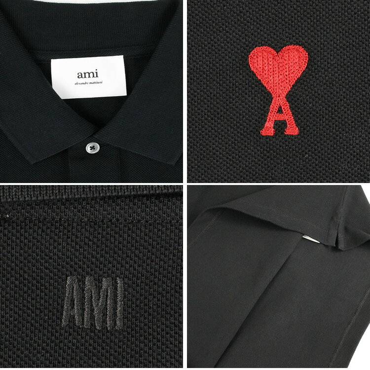アミ パリス ポロシャツ メンズ 半袖 ハートロゴ 刺繍 コットン 綿 鹿の子 ブランド 大きいサイズ おしゃれ 大人 白 黒 ホワイト ブラック ami paris AMI DE COEUR POLO SHIRT BFUPL001.760 [ネコポス発送]