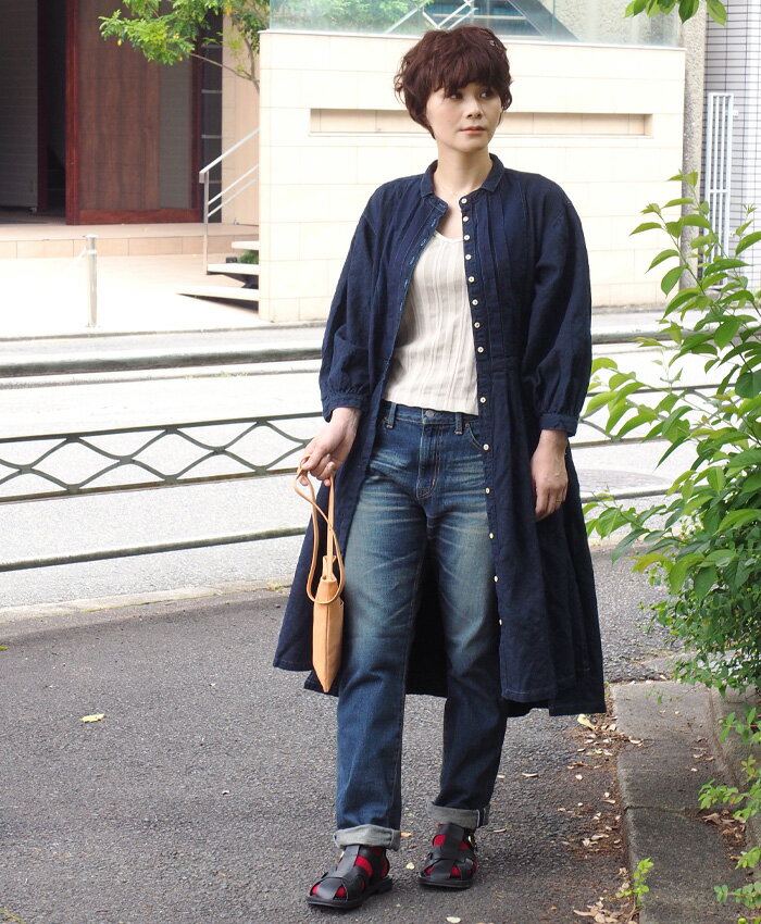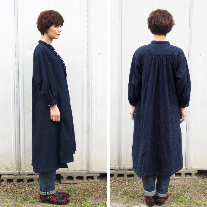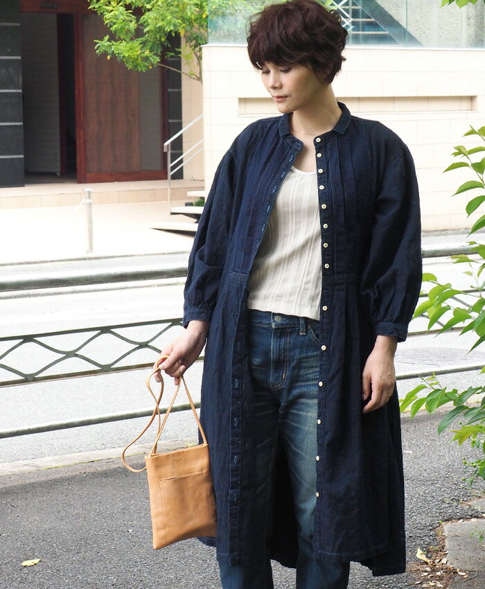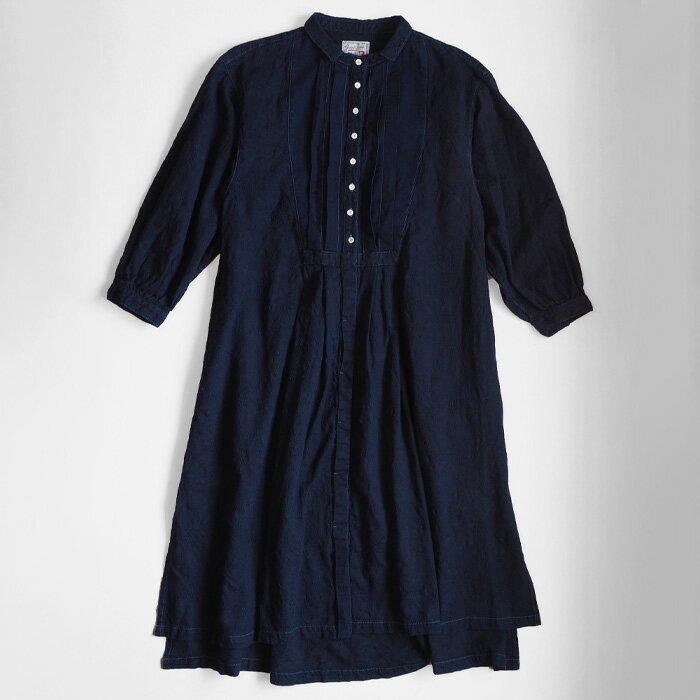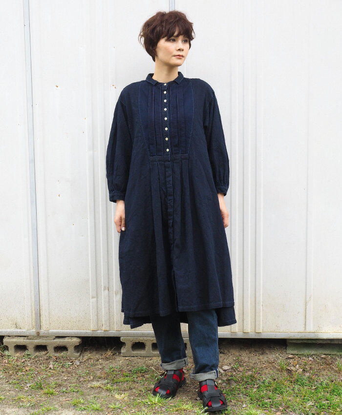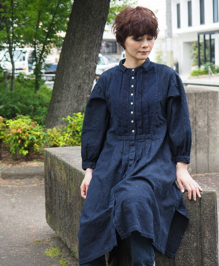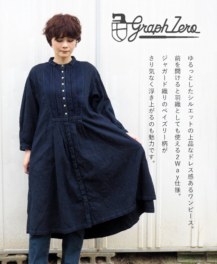 graphzero(グラフゼロ) プリーテッドワンピース インディゴ ペイズリー フリーサイズ [La-PTOP-0311] 岡山 倉敷 児島 ジーンズ デニム ブランド レディース 綿100% コットン100% 体型カバー フレンチ Aライン ドレス ネイビー 紺 春 夏 秋 冬 オーバーシャツ 日本製