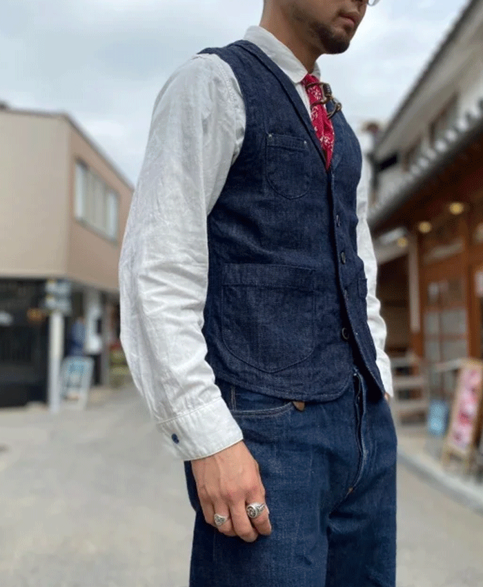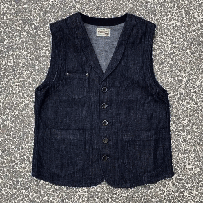 graphzero(グラフゼロ) ショールカラーベスト 10oz ブロークンツイル メンズ レディース 男女兼用 [GZ-SLVT-0504] 岡山 倉敷 児島 ジーンズ デニム ブランド ヴィンテージデザイン XS S M L XL XXL インディゴ ワーク 春 秋 冬 おしゃれ 日本製 国産