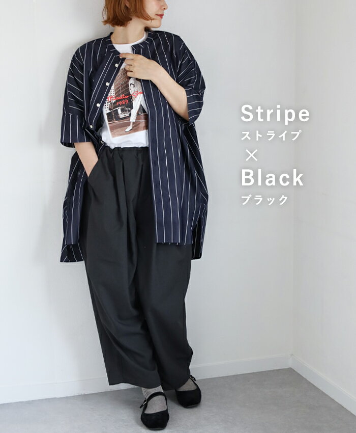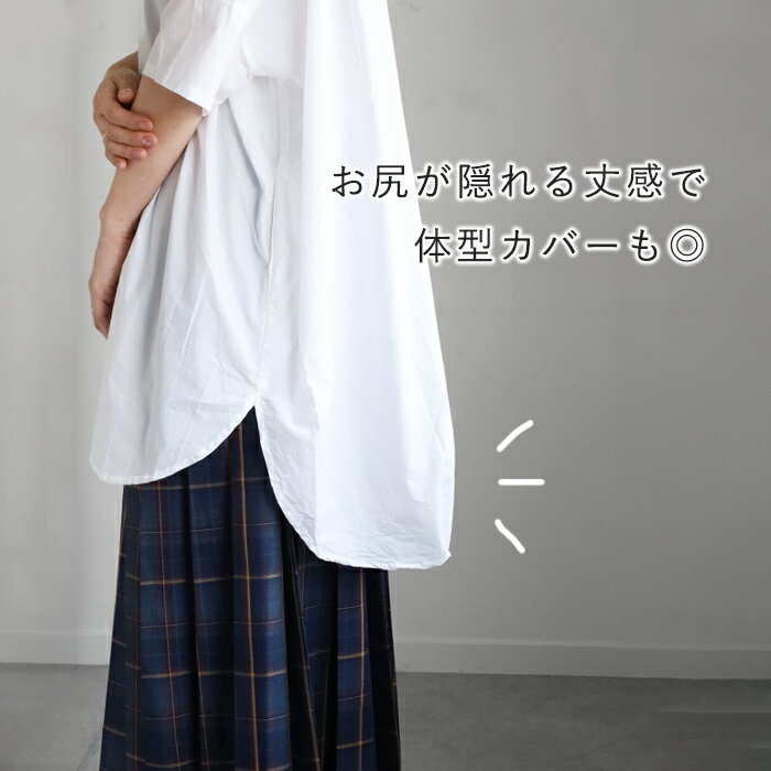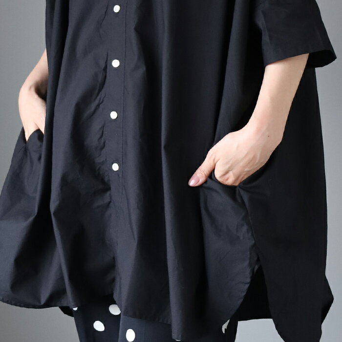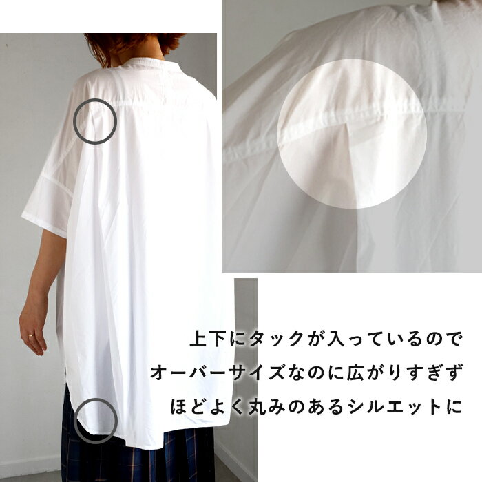 【3色】merciful(マーシフル) ビッグ ショートスリーブ チュニック シャツ 綿 フリーサイズ レディース [MF4200] トップス 大きいサイズ ゆるい ゆったり 体型カバー 羽織 七分袖 七分丈 五分袖 五分丈 オシャレ かわいい 可愛い コットン 仕事 春 夏 秋 白 黒 日本製 国産