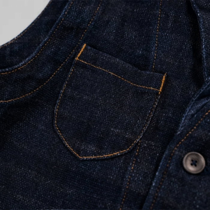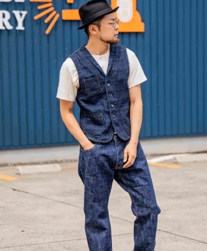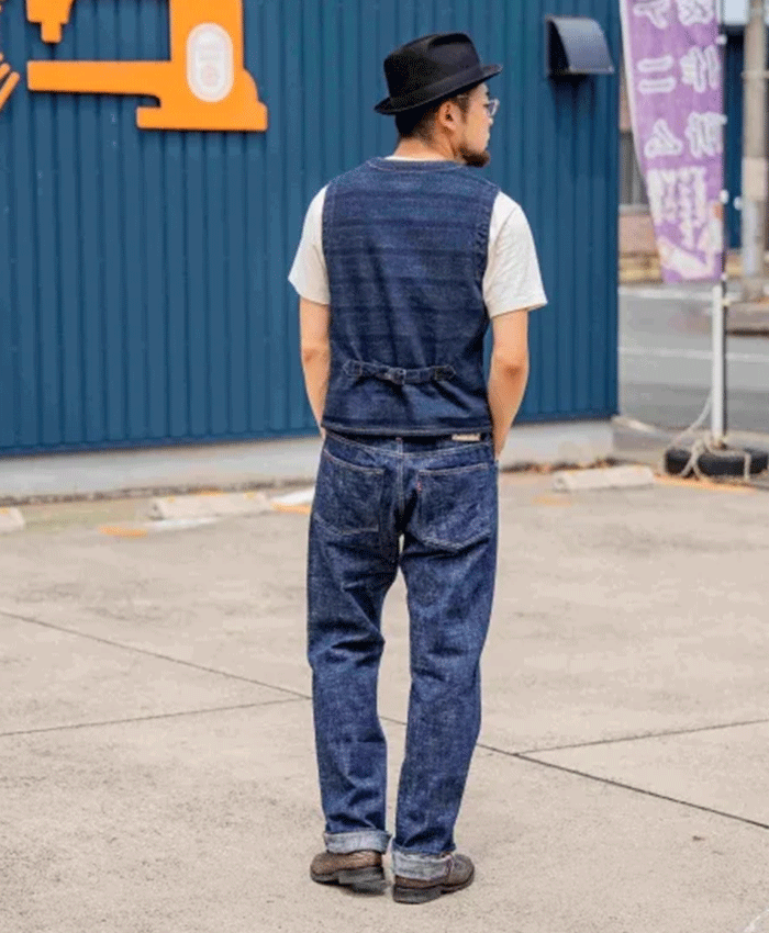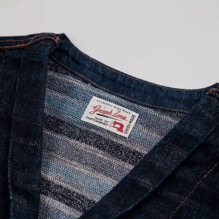 graphzero(グラフゼロ) ショールカラーベスト 11オンス ブロークンデニム ボーダー メンズ レディース 男女兼用 [GZ-SLVT-0608BRBD] 岡山 倉敷 児島 ジーンズ デニム ブランド ヴィンテージデザイン S M L XL XXL インディゴ ワーク 春 秋 冬 おしゃれ 日本製 国産