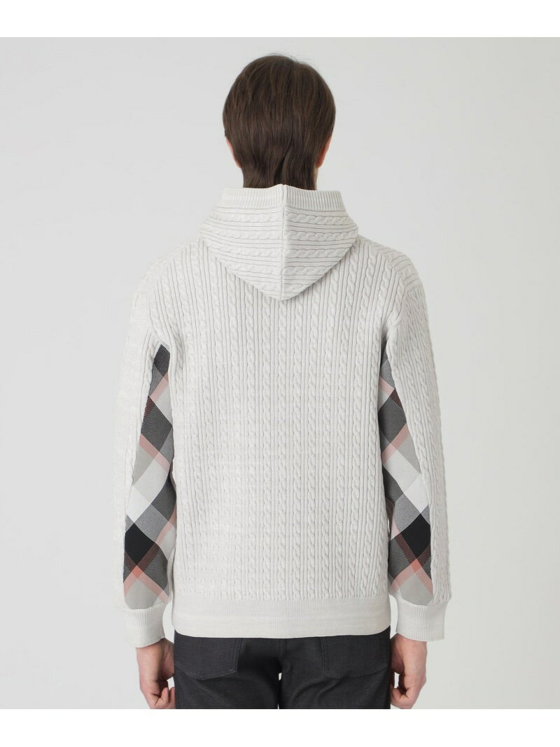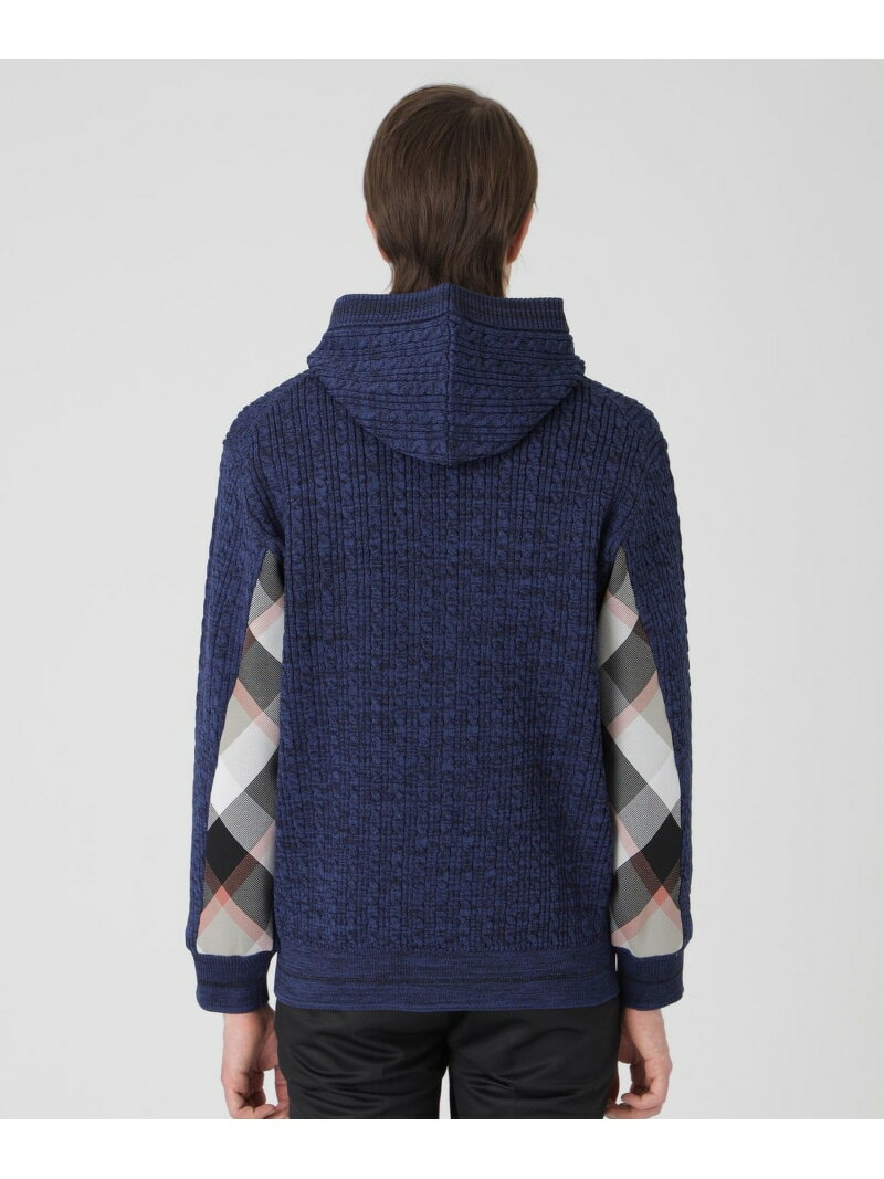 チェックコンビフードカーディガン BLACK LABEL CRESTBRIDGE ブルーレーベル / ブラックレーベル・クレストブリッジ トップス ニット ネイビー ホワイト【送料無料】[Rakuten Fashion]