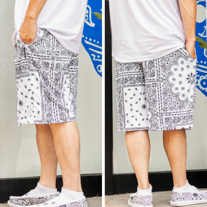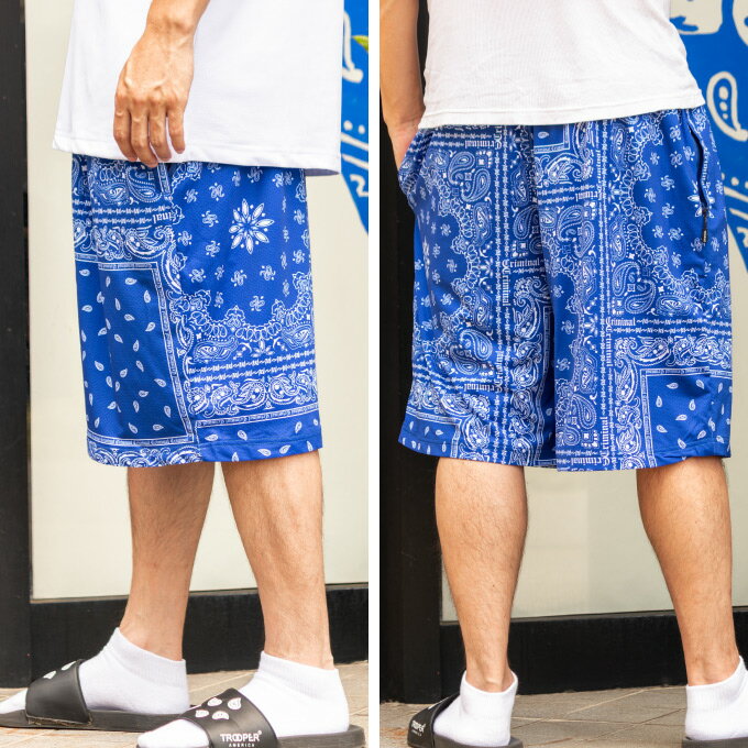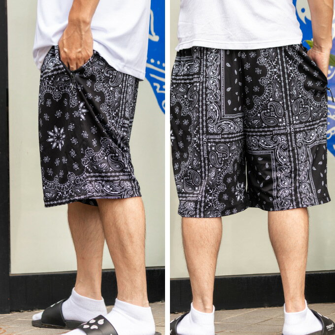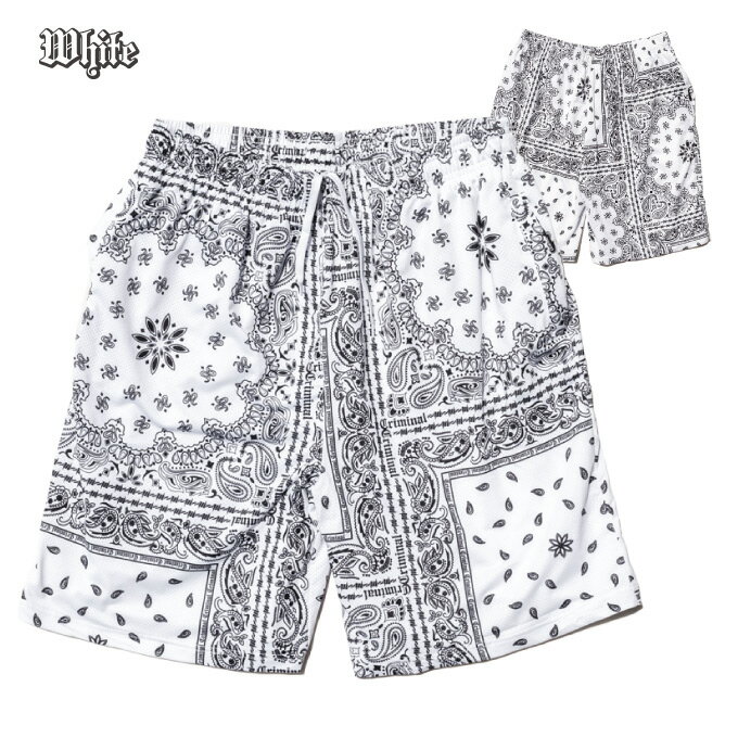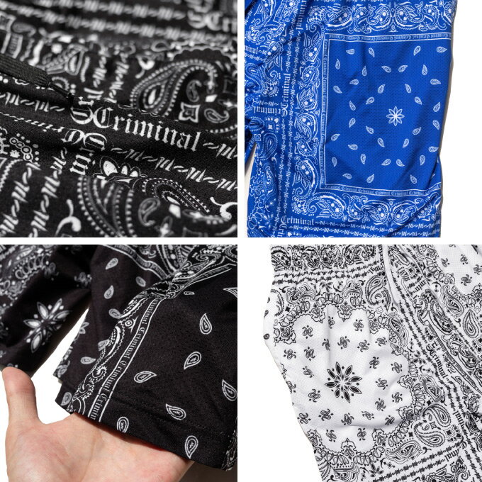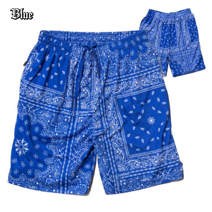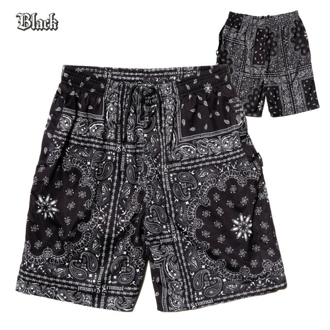 【L〜4XL】【オリジナル バンダナ メッシュパンツ】 バスパン メッシュショーツ 【吸汗速乾】バスケ ダボパン トレパン ダンス衣装 スポーツ ジム フェス メンズ キッズ 大きいサイズ ペイズリー BANDANA MESH 【クリミナルバスパン】 CRIMINAL