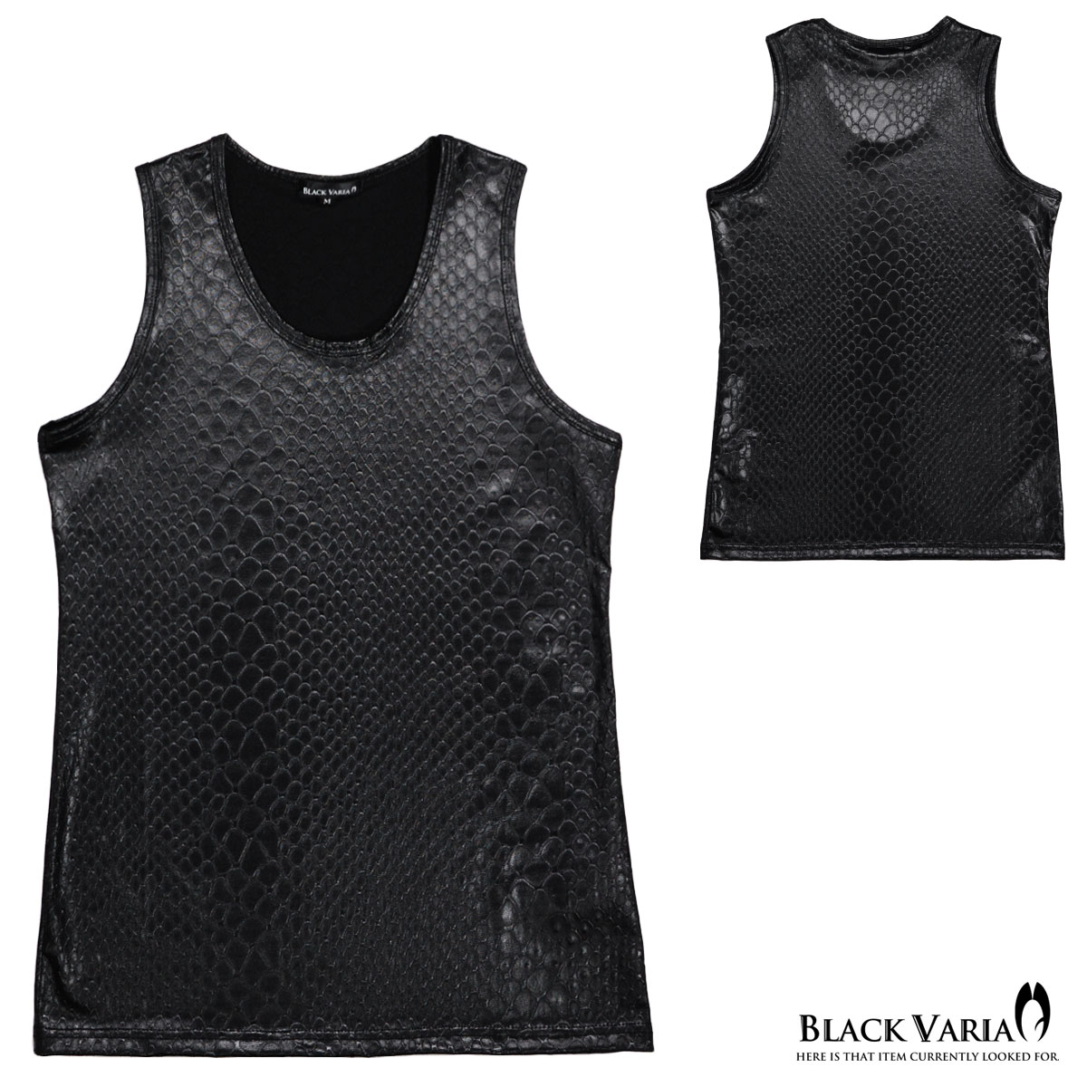 タンクトップ パイソン 蛇 ヘビ アニマル柄 メンズ 光沢 総柄 日本製 ストレッチ 細身 タンク mens ファッション おしゃれ (ブラック黒) 181308