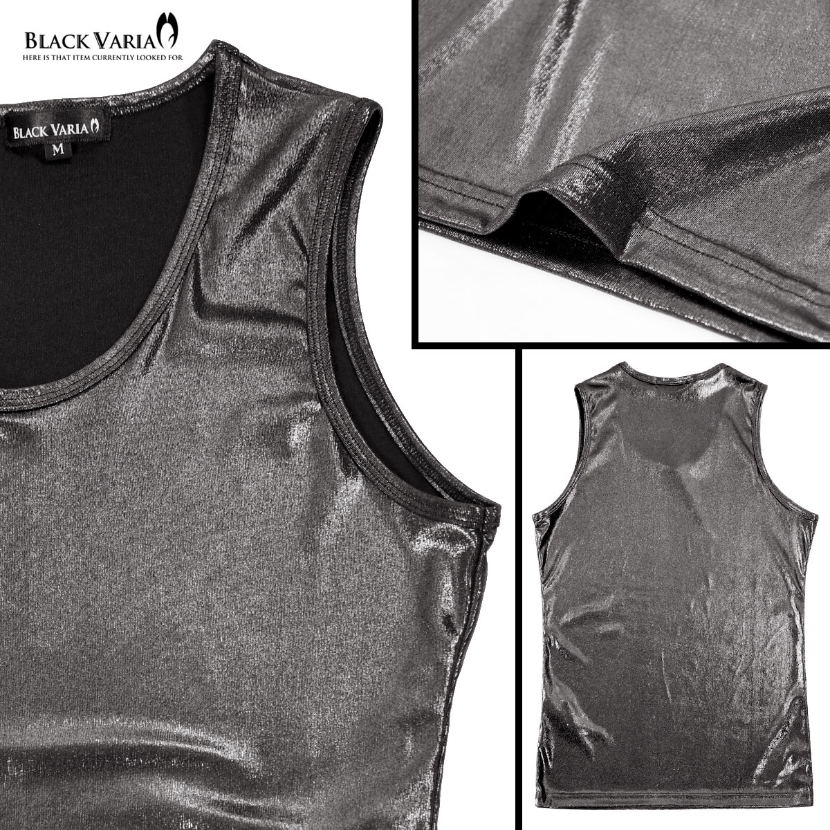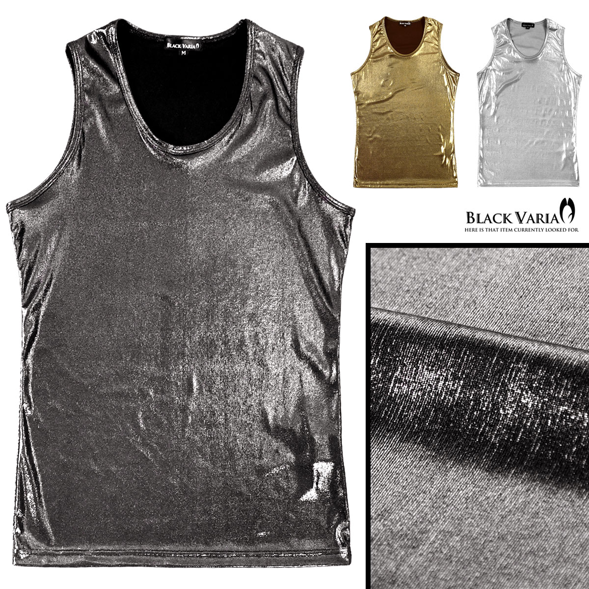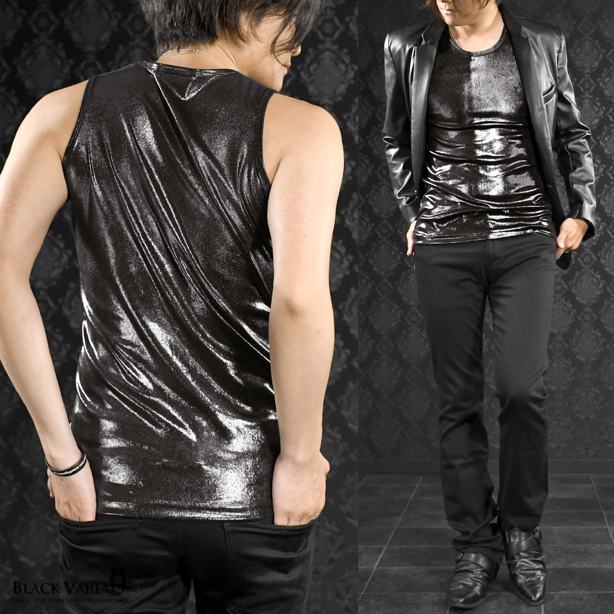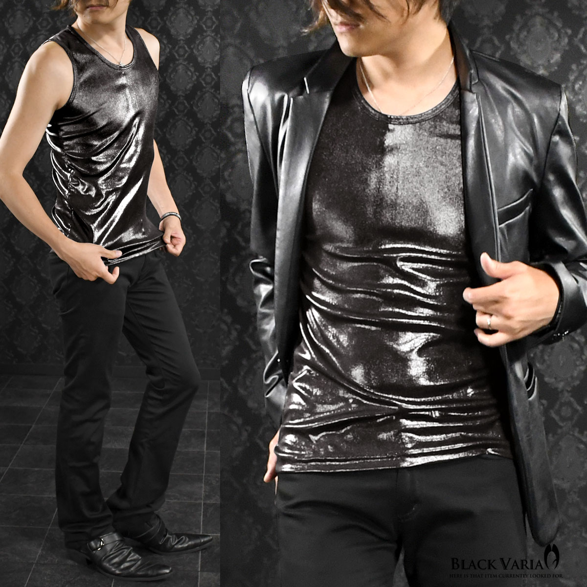 タンクトップ ラメ 無地 メンズ 日本製 ストレッチ 光沢 細身 タンク mens ファッション おしゃれ (ブラック黒) 181323