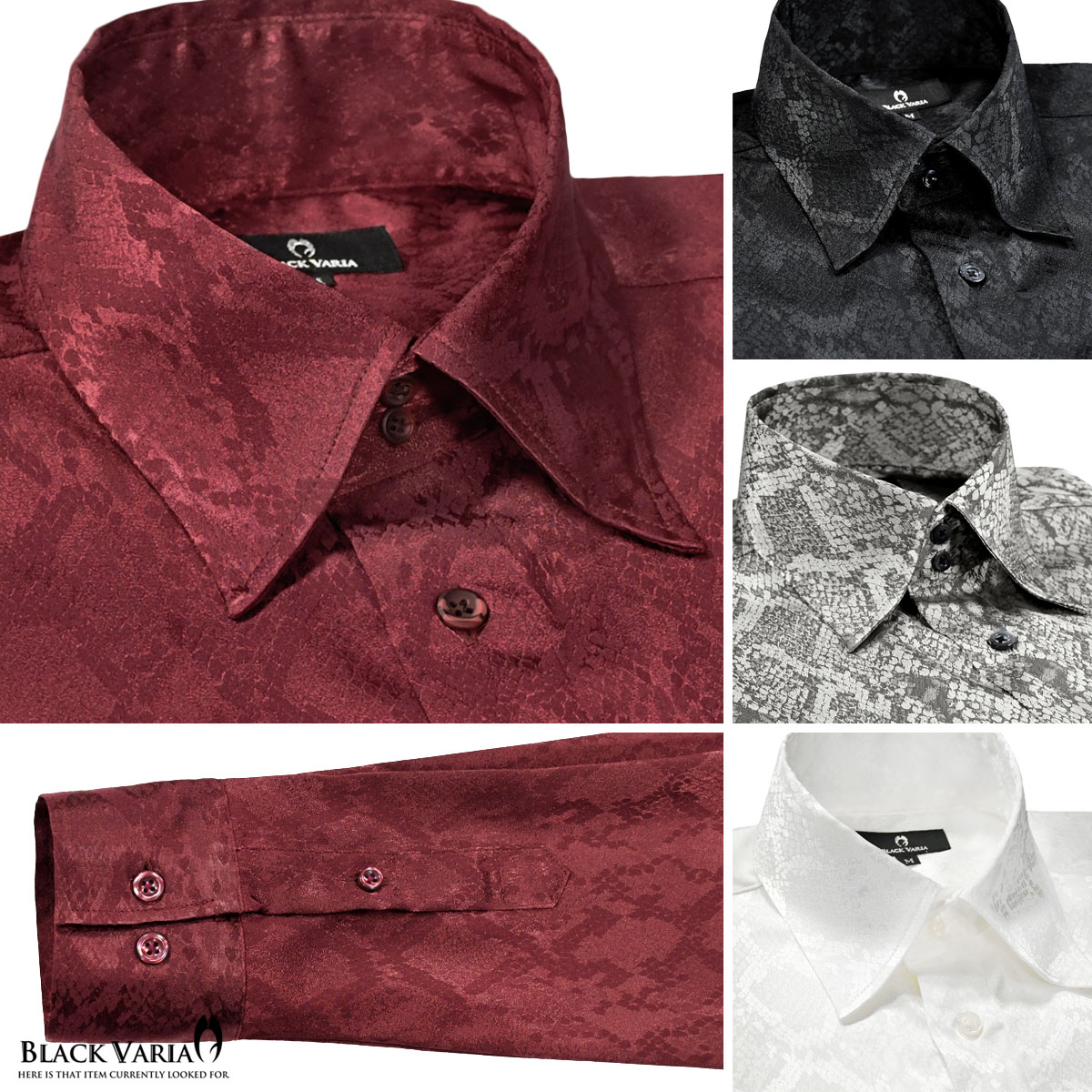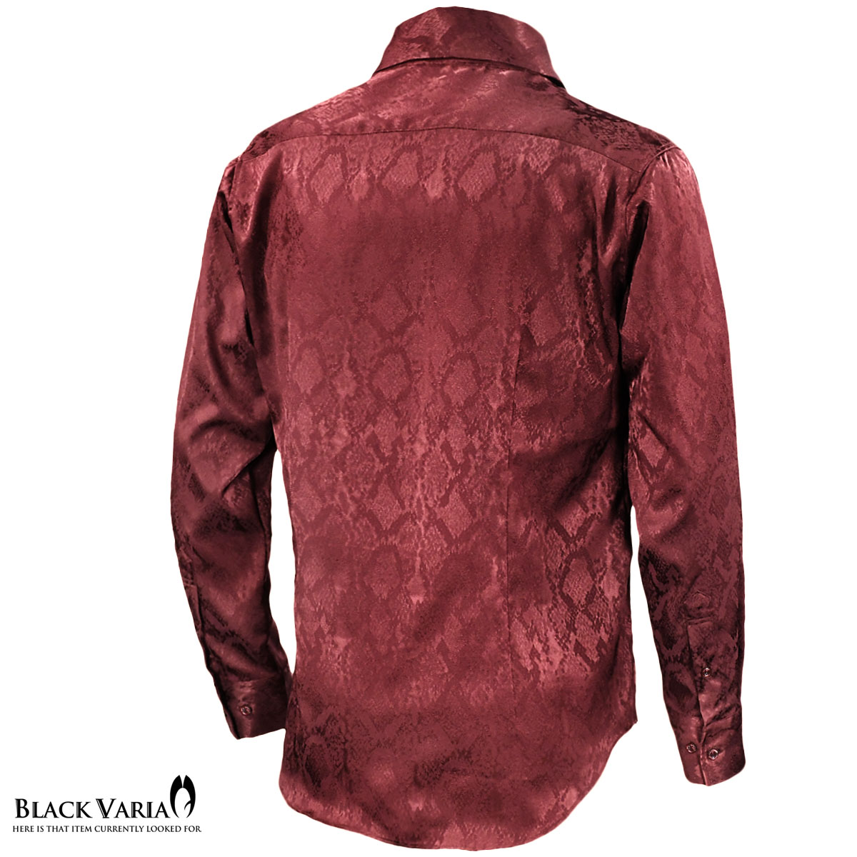 サテンシャツ ドレスシャツ ドゥエボットーニ パイソン 襟高 蛇 日本製 レギュラーカラー ジャガード パーティー メンズ mens ファッション おしゃれ (ワインレッド赤) 181711