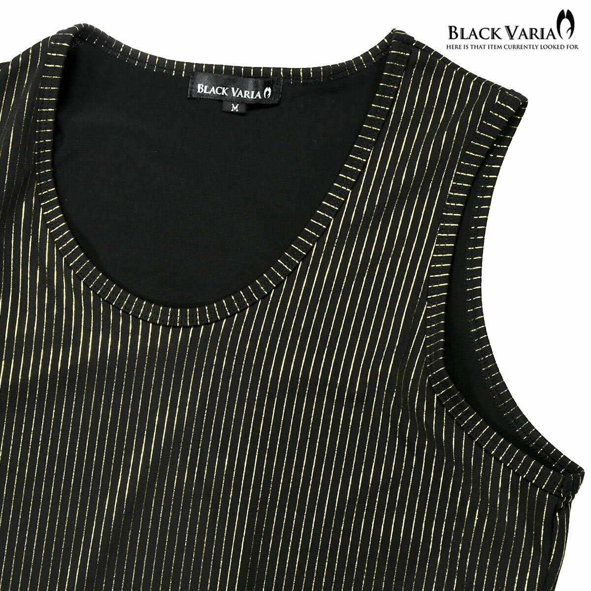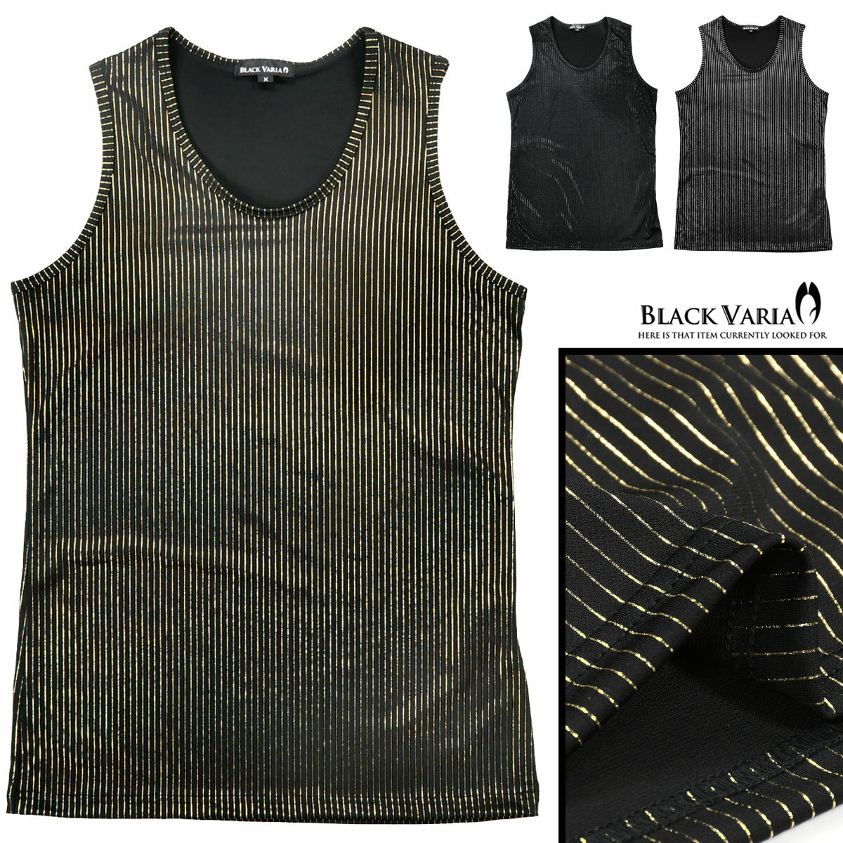 タンクトップ ストライプ柄 光沢 ラメ メンズ 日本製 ストレッチ 細身 タンク mens ファッション おしゃれ (ゴールドライン金ブラック黒) 193210