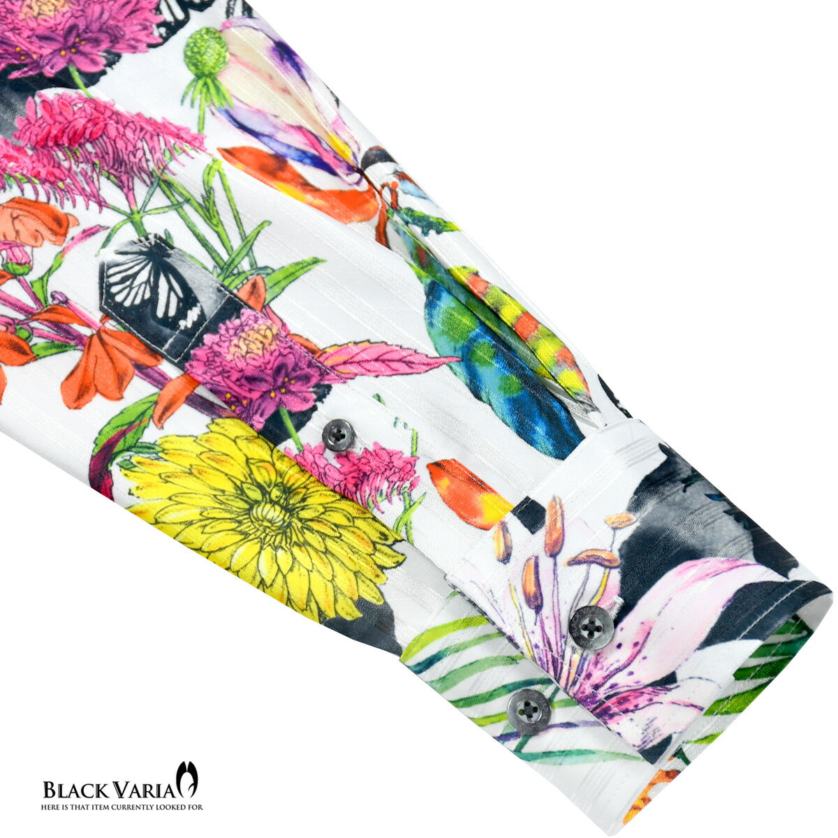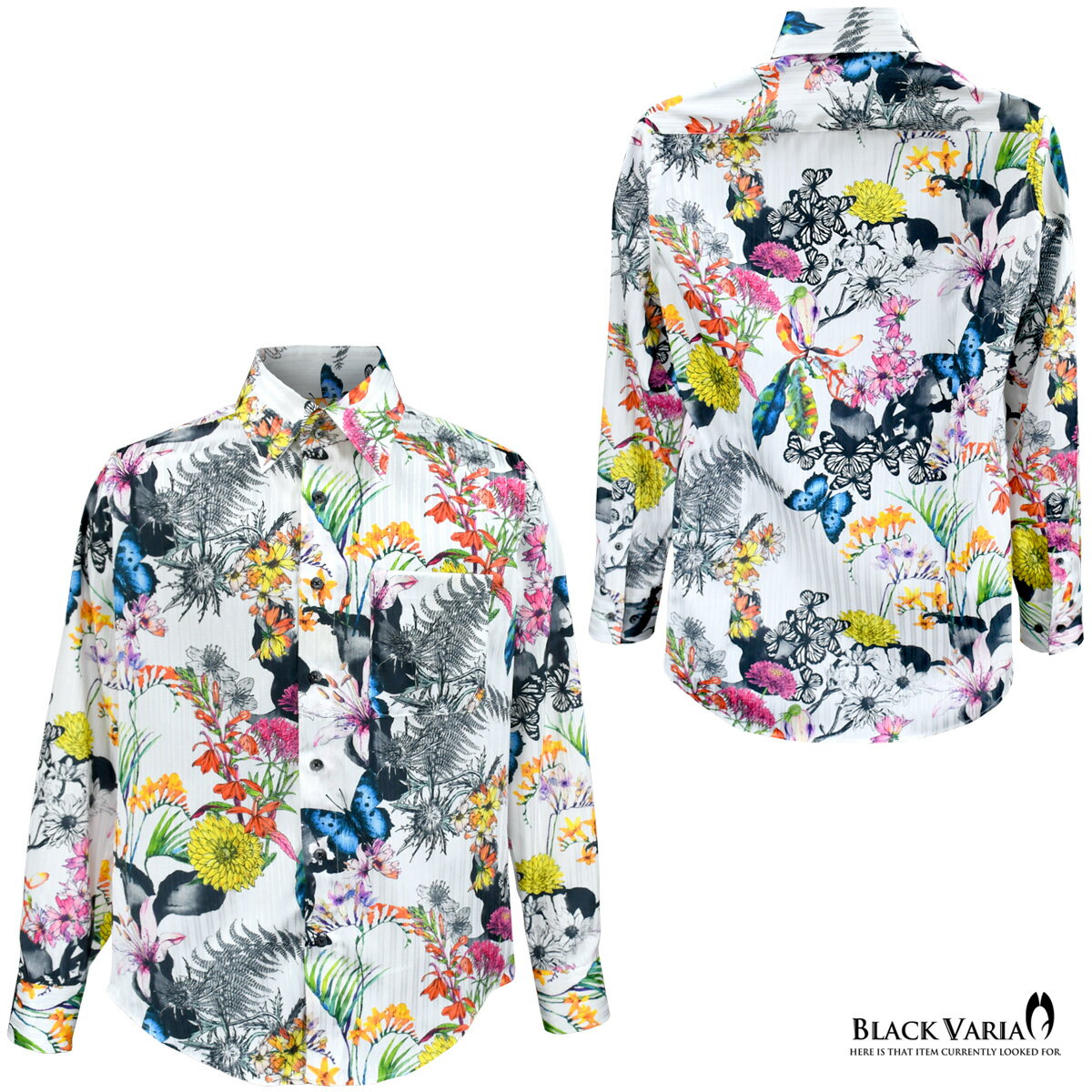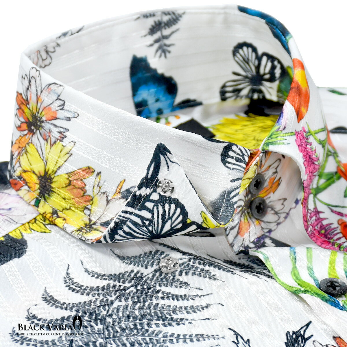サテンシャツ ドゥエボットーニ 花柄 ボタニカル柄 蝶 ドレスシャツ スナップダウン 日本製 ジャガード パーティー メンズ mens ファッション おしゃれ (ホワイト白) 211203