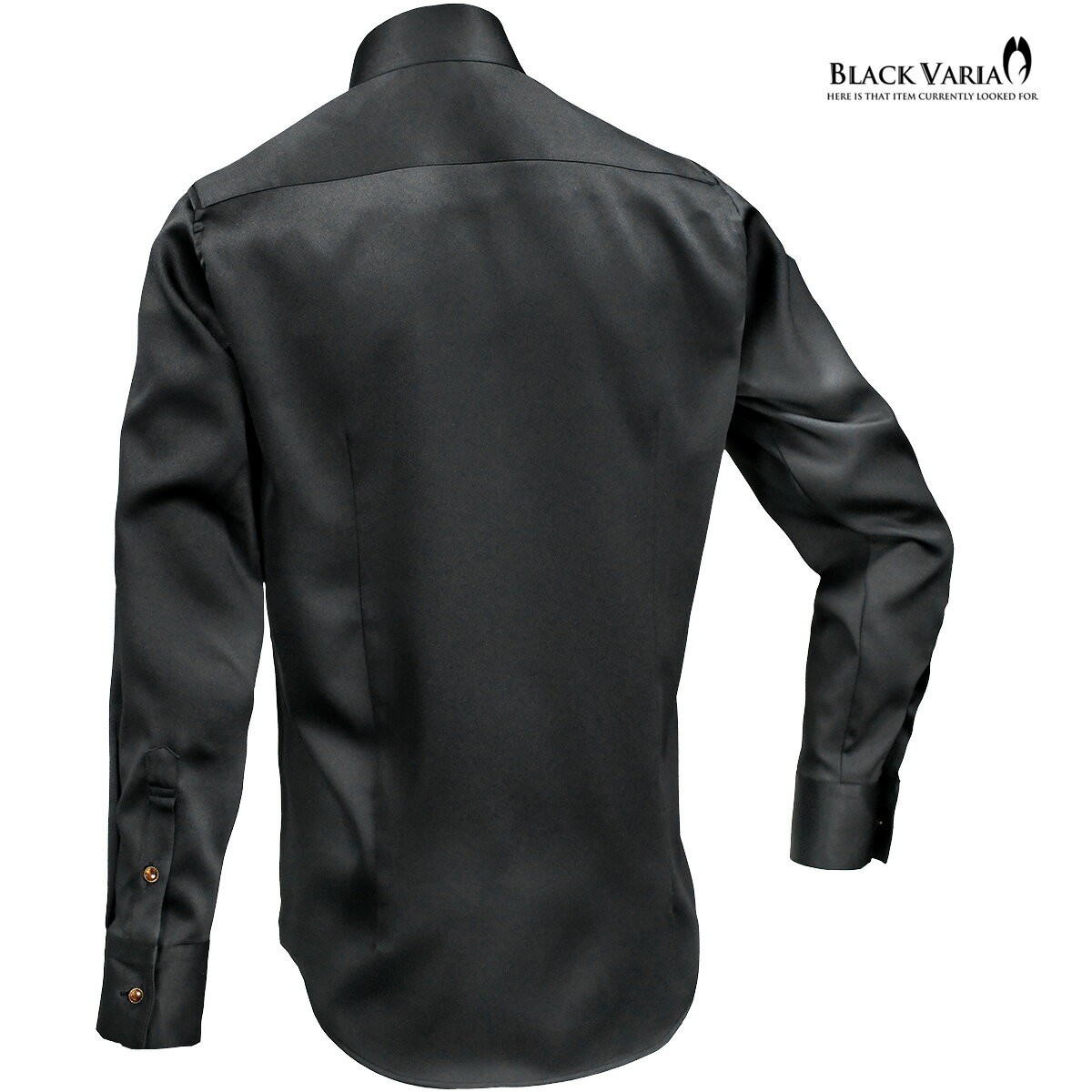 サテンシャツ ラインストーンボタン ドレスシャツ パウダーサテン レギュラーカラー パーティー メンズ mens ファッション おしゃれ (ブラック黒) 21170
