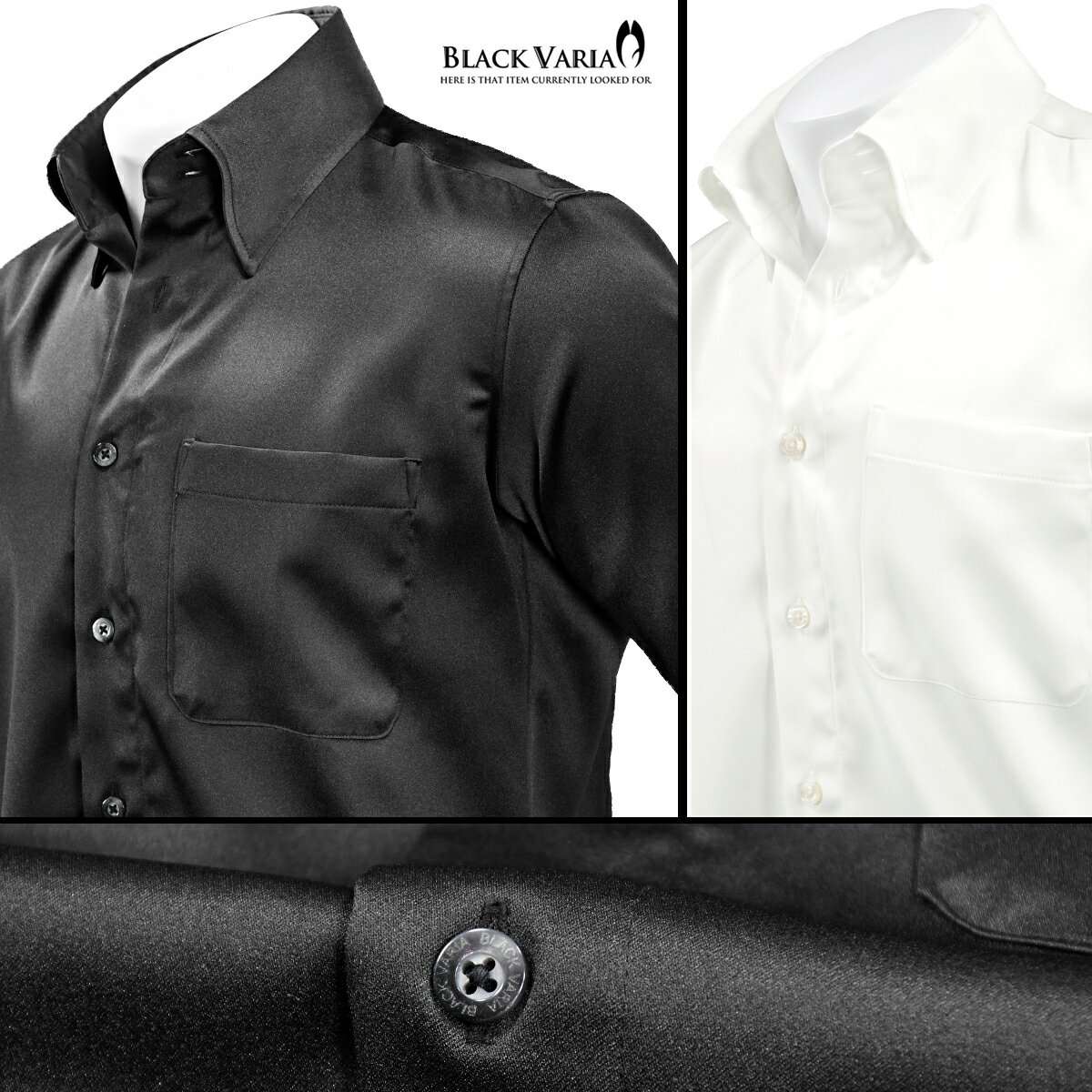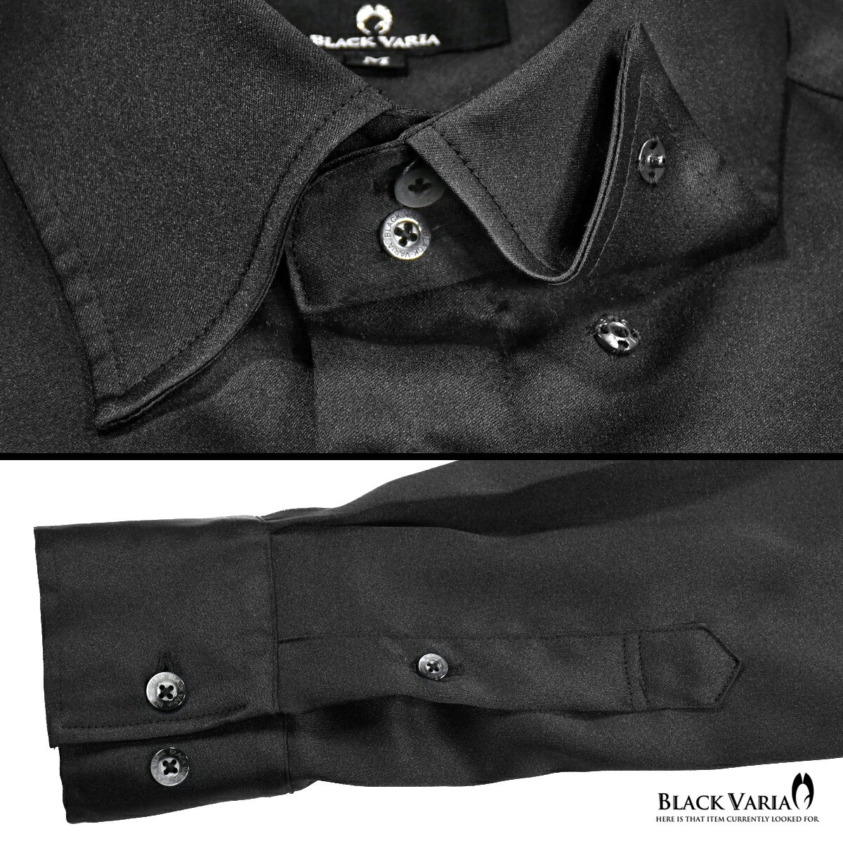サテンシャツ 無地 ドレスシャツ ドゥエボットーニ 襟高 パウダーサテン スナップダウン パーティー メンズ mens ファッション おしゃれ (ブラック黒) 201355